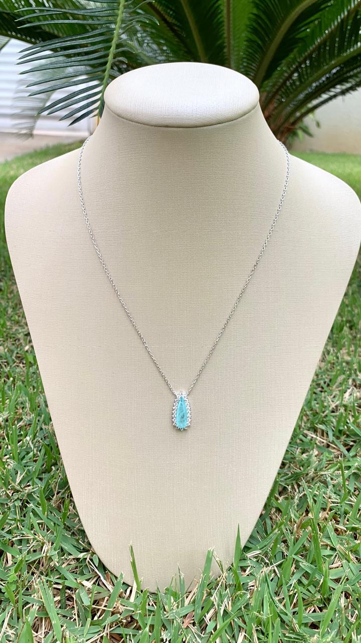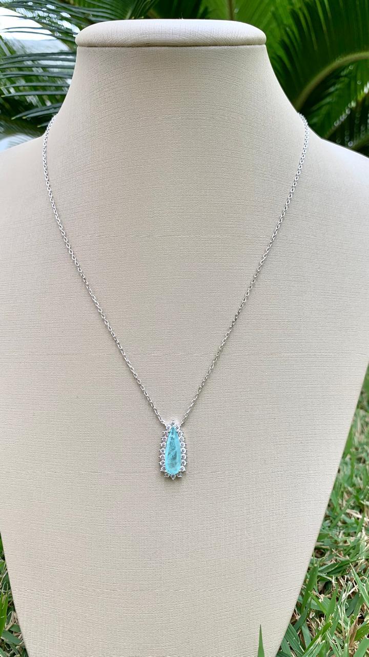 Colar gota alongada turmalina fusion cravejada de zircônias brancas ao redor, em prata 925.