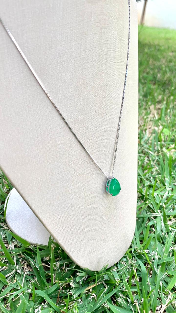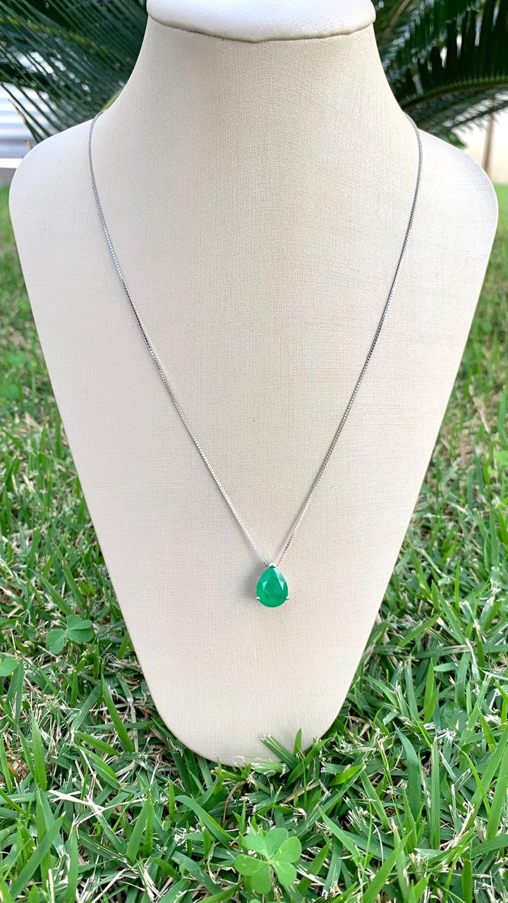 Colar gota esmeralda, com 45cm de comprimento, em prata 925.