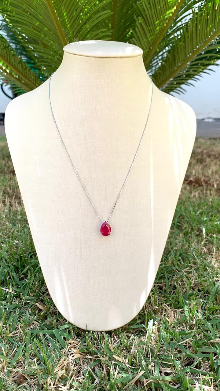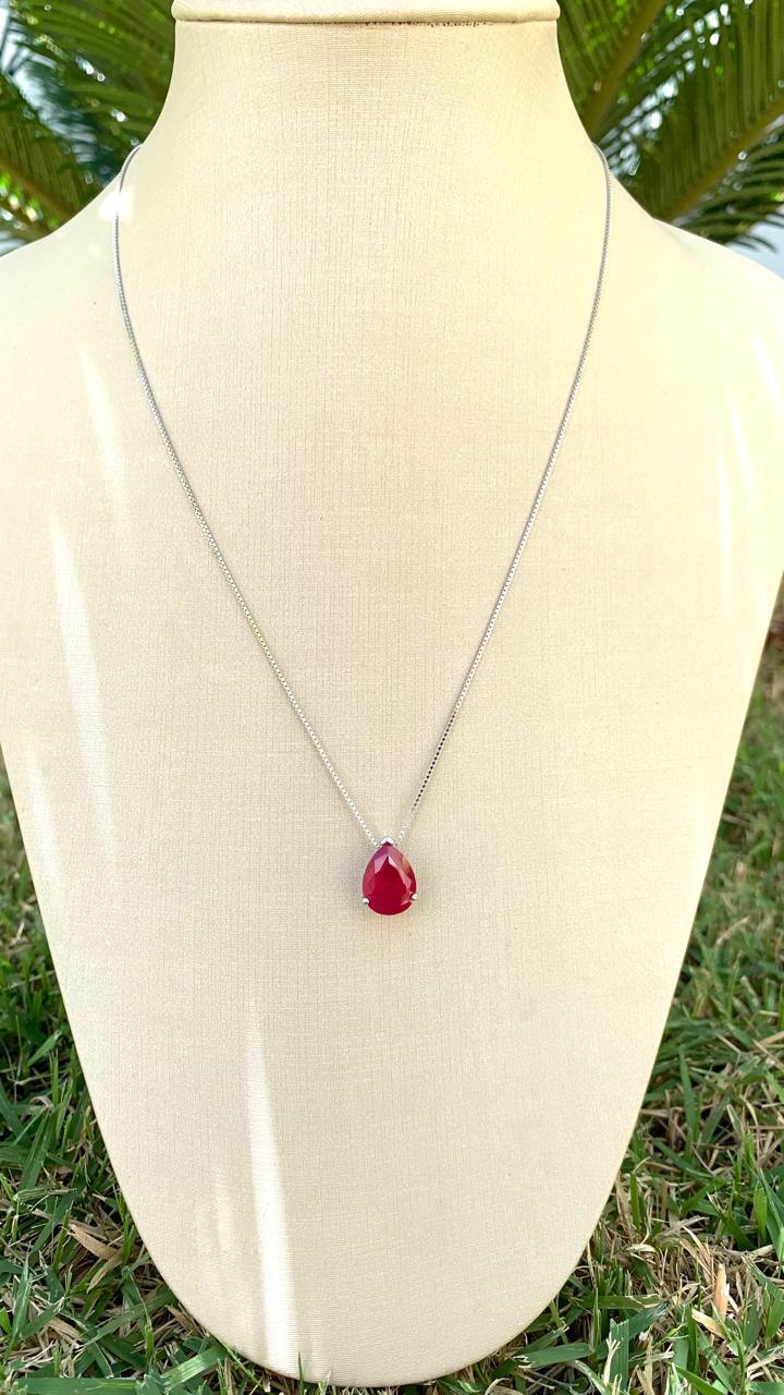 Colar gota lisa 10mm pedra natural rubi, em prata 925.