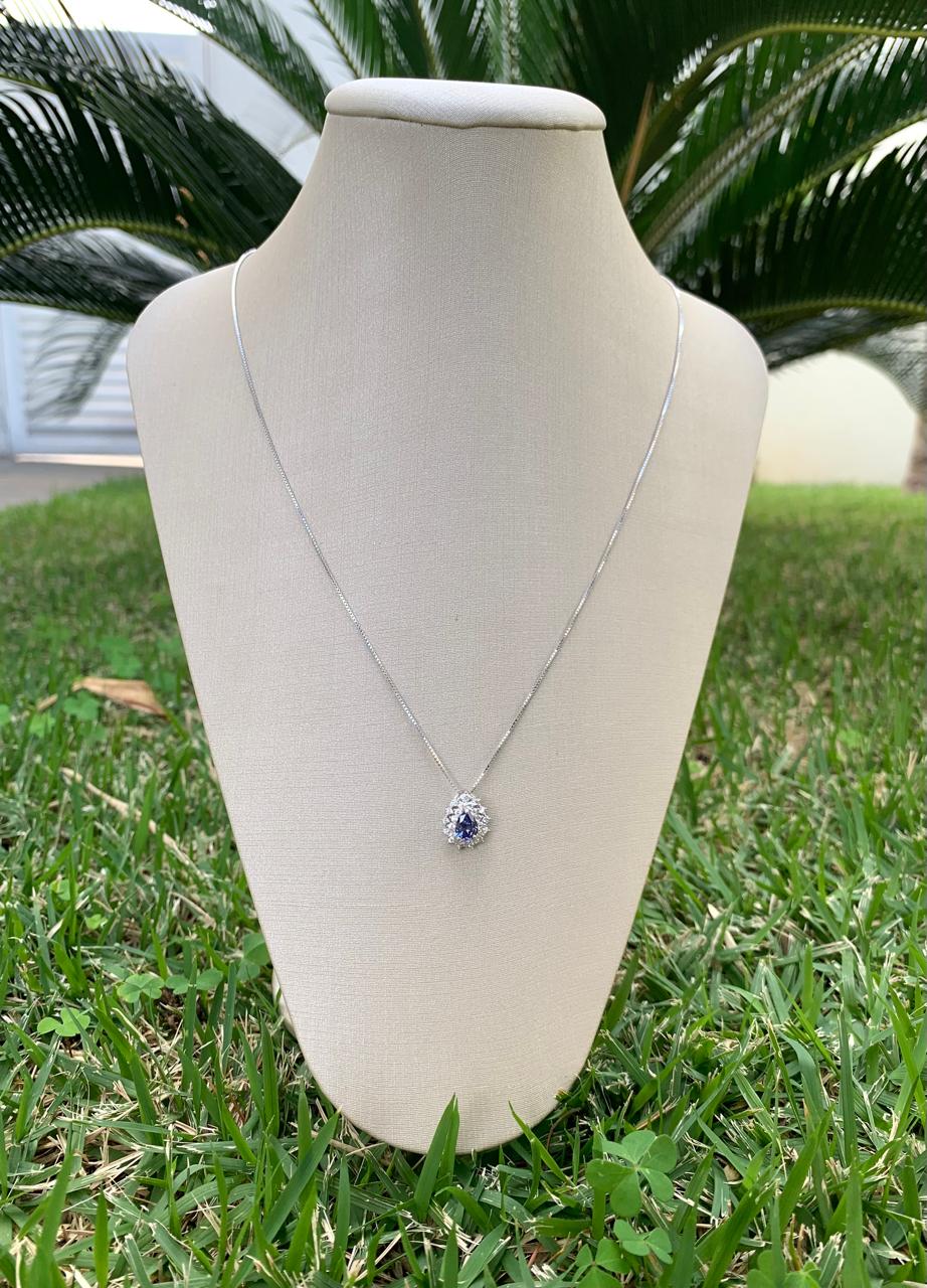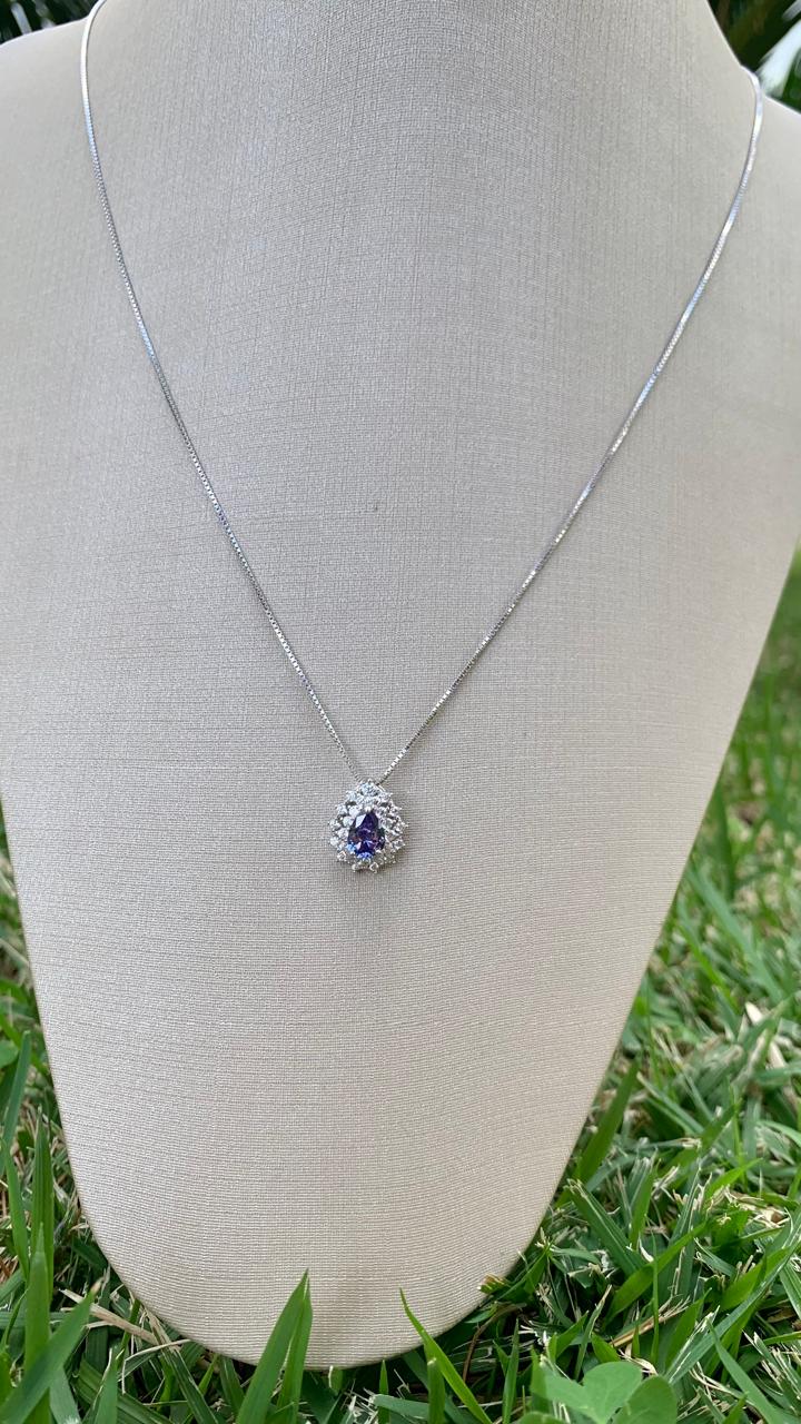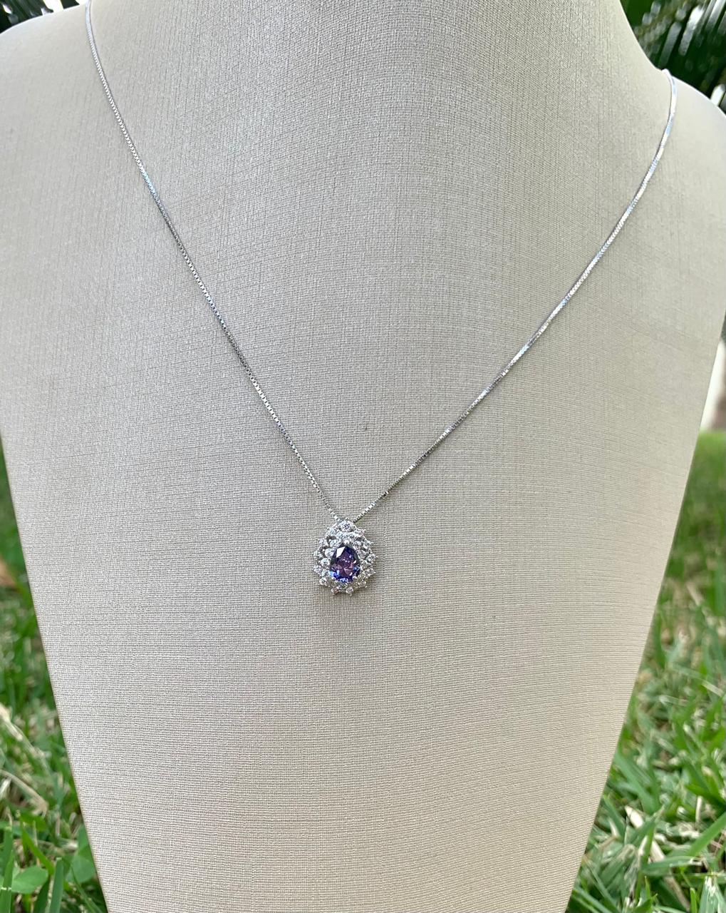 Colar veneziana gota tanzanita 5mm, duas fileiras com cravação princesa em prata 925.