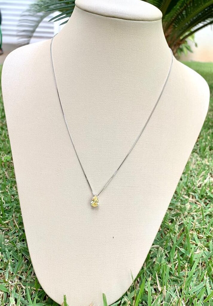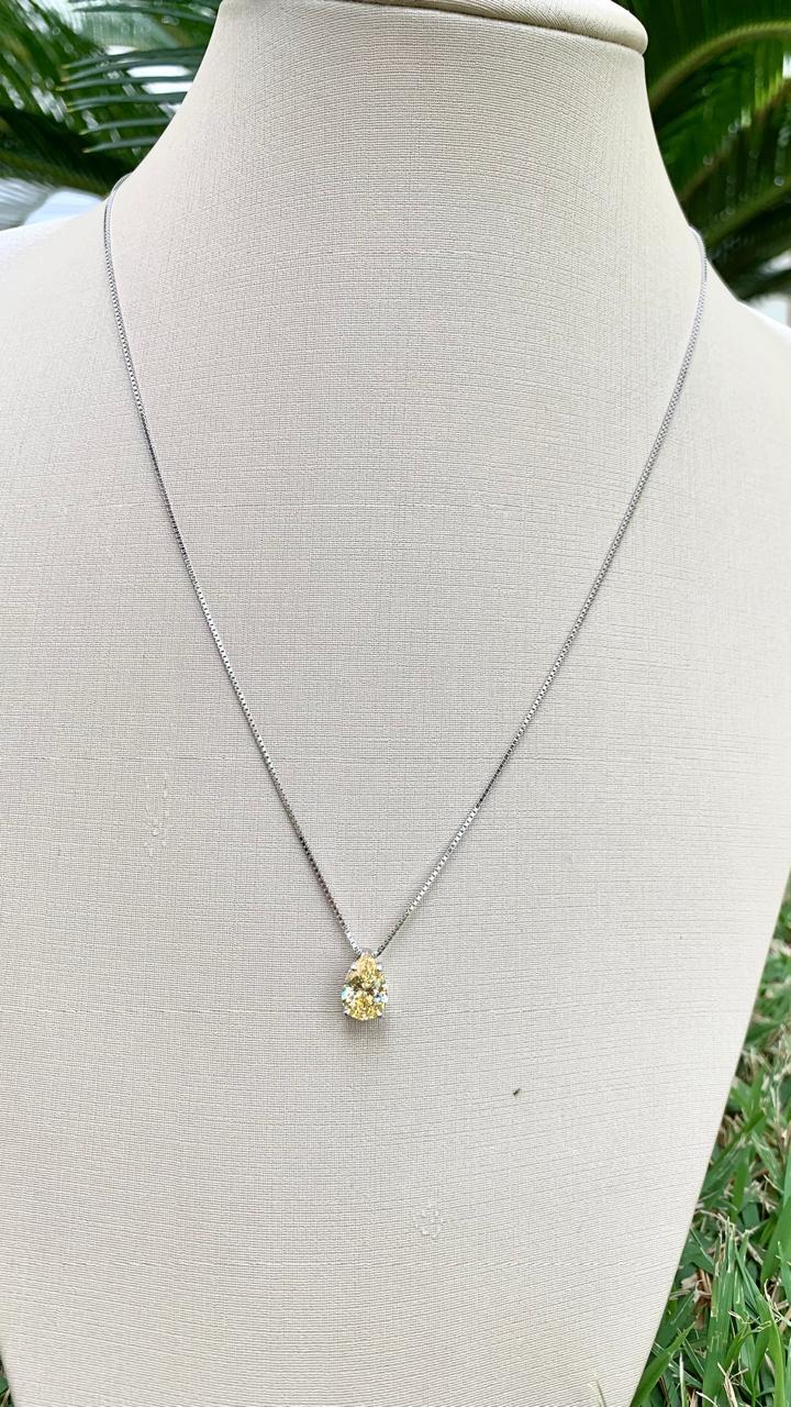 Colar gota yellow fancy 7mm em prata 925.