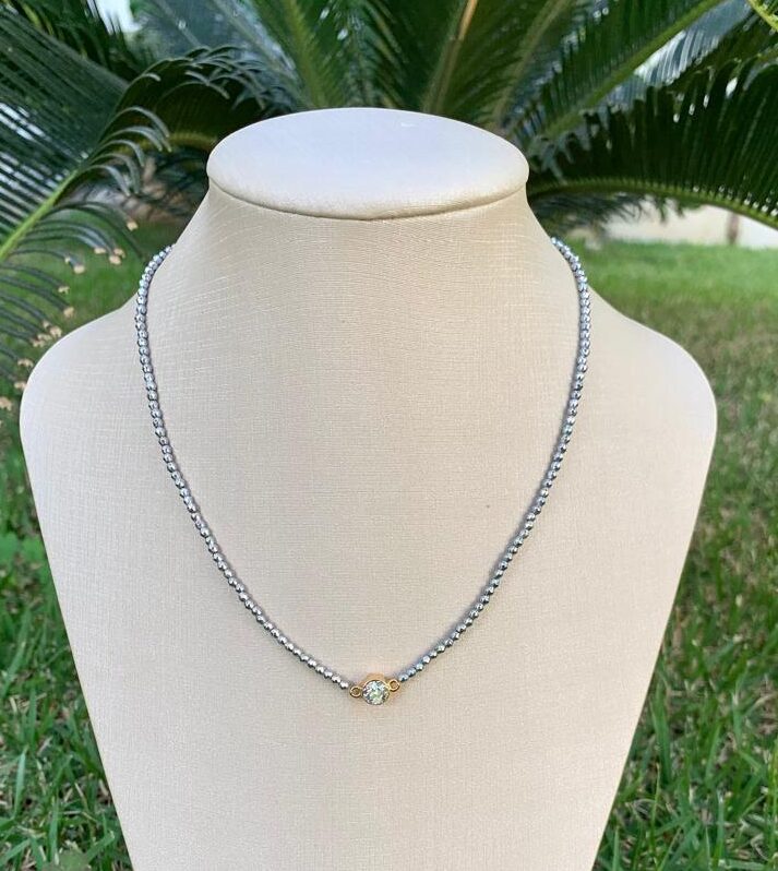 Colar de Hematita com Cristal Banhado a Ouro 18k