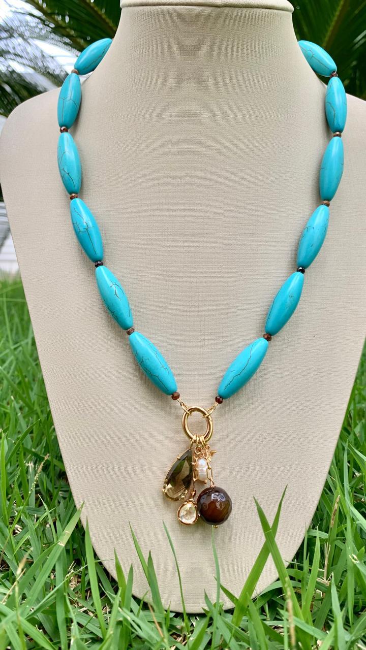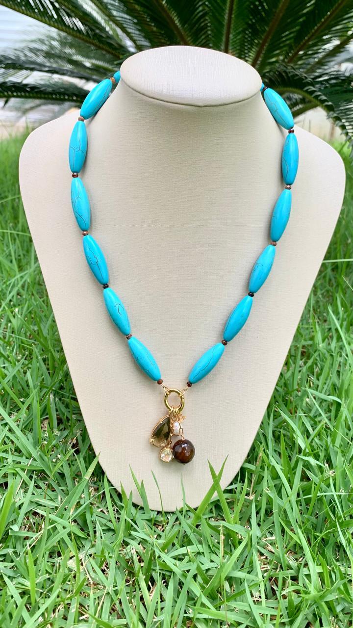 Colar howlita turquesa com pedras naturais, banhado a ouro18k.