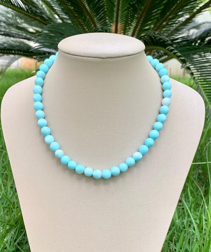 Colar de pedra natural jade amazonita, com fecho e extensor banhado a ouro18k.