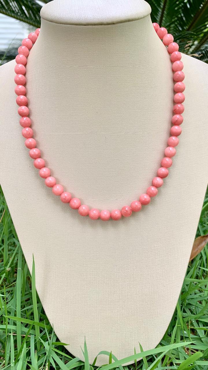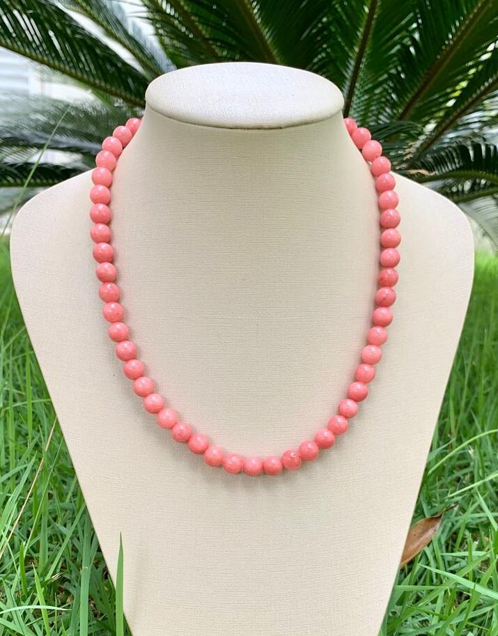 Colar de pedra natural jade goiaba, banhado a ouro18k.
