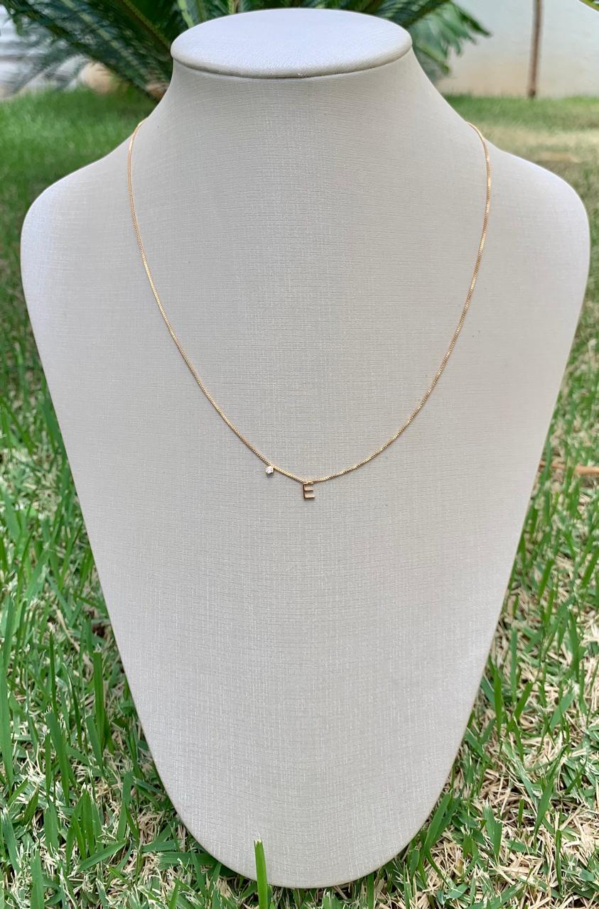 Colar letra E, banhado a ouro 18k com ponto de luz.