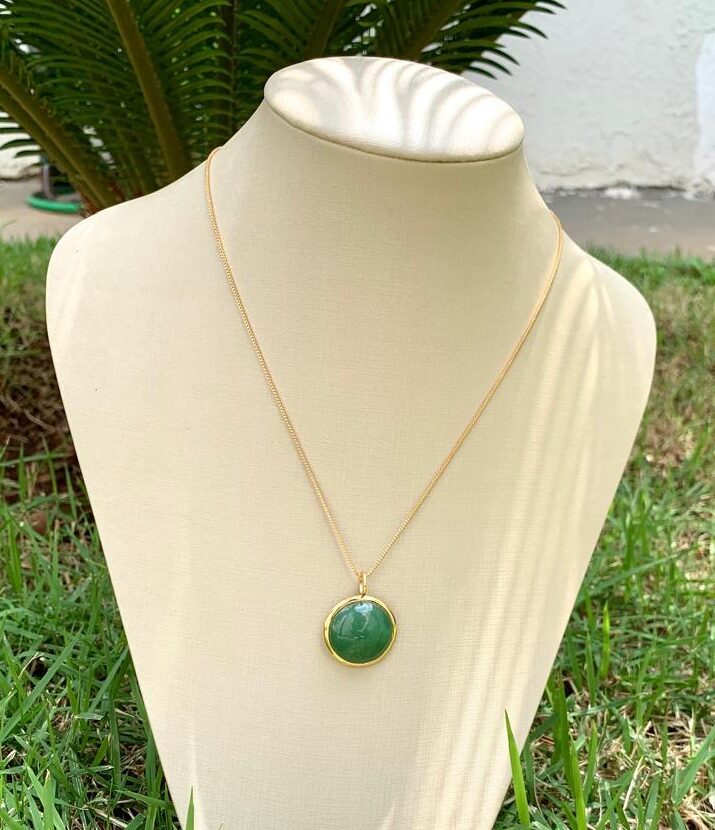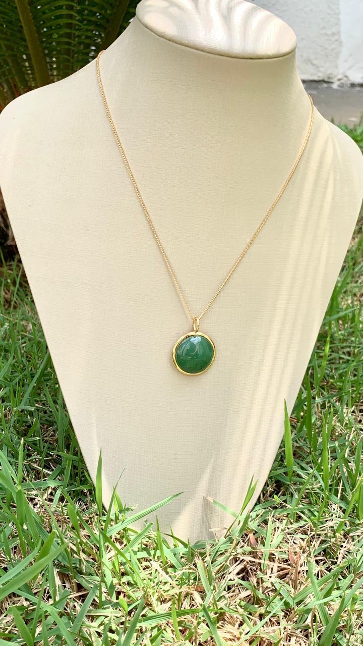 Colar longo pedra natural jade verde, banhado a ouro18k.