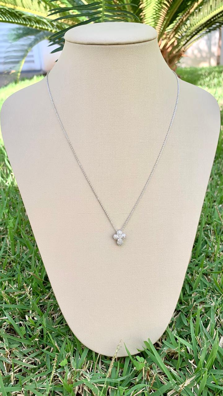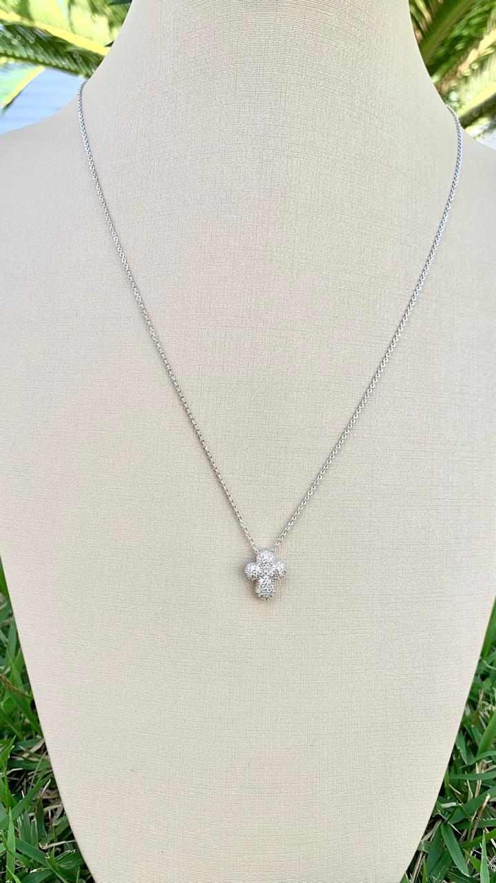 Colar mini cruz cravejada com zircônias brancas, em ródio branco.