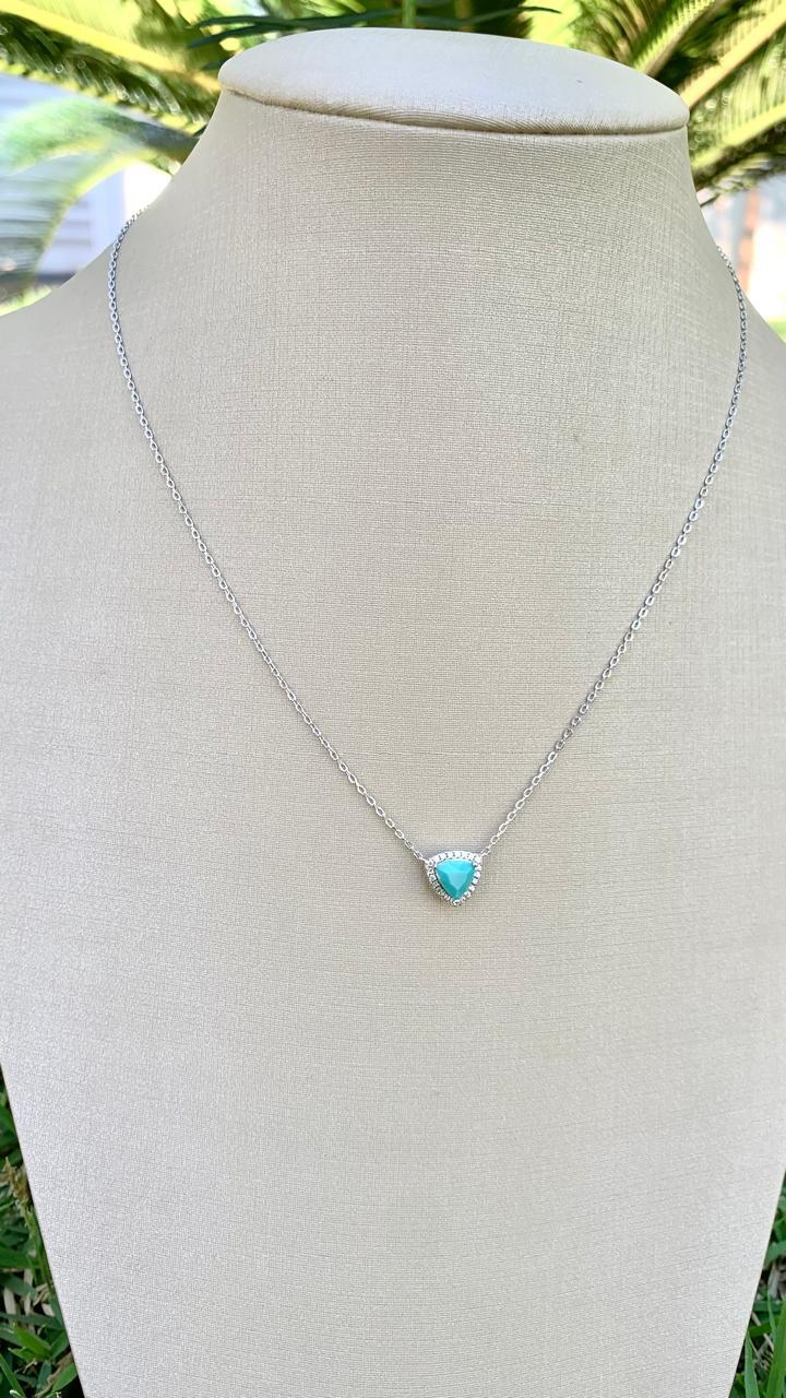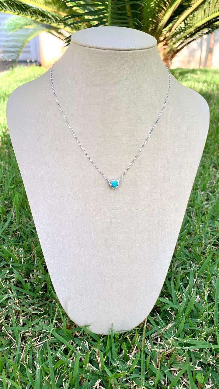Colar nano turquesa Cravejado com zircônias brancas ao redor, em prata 925.