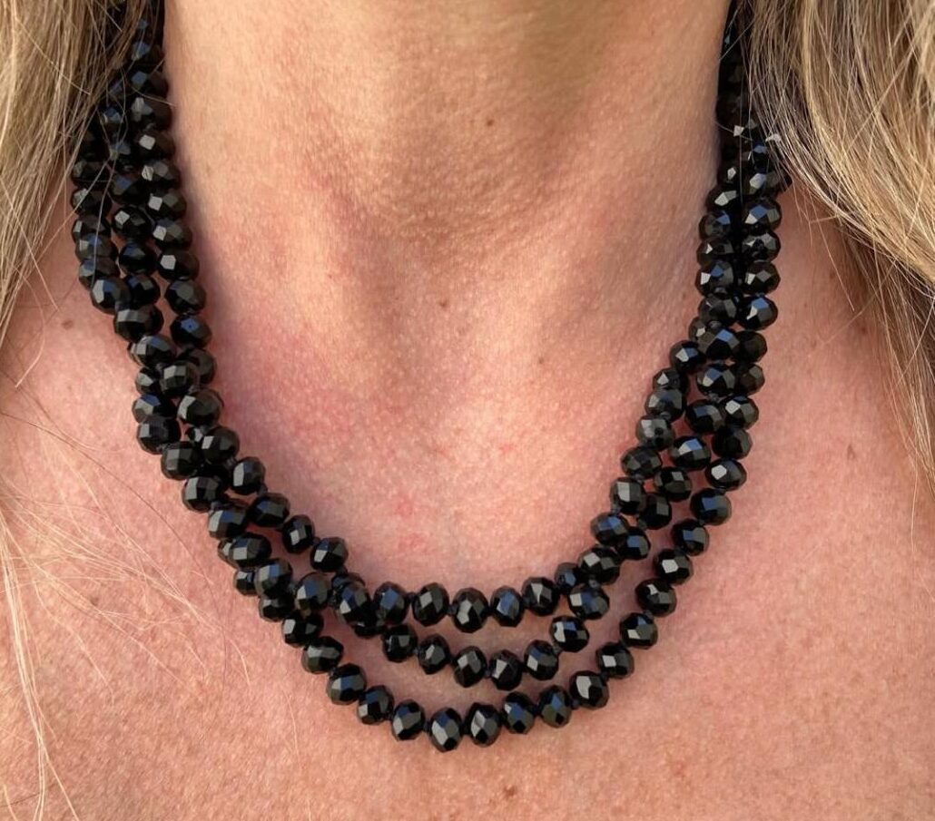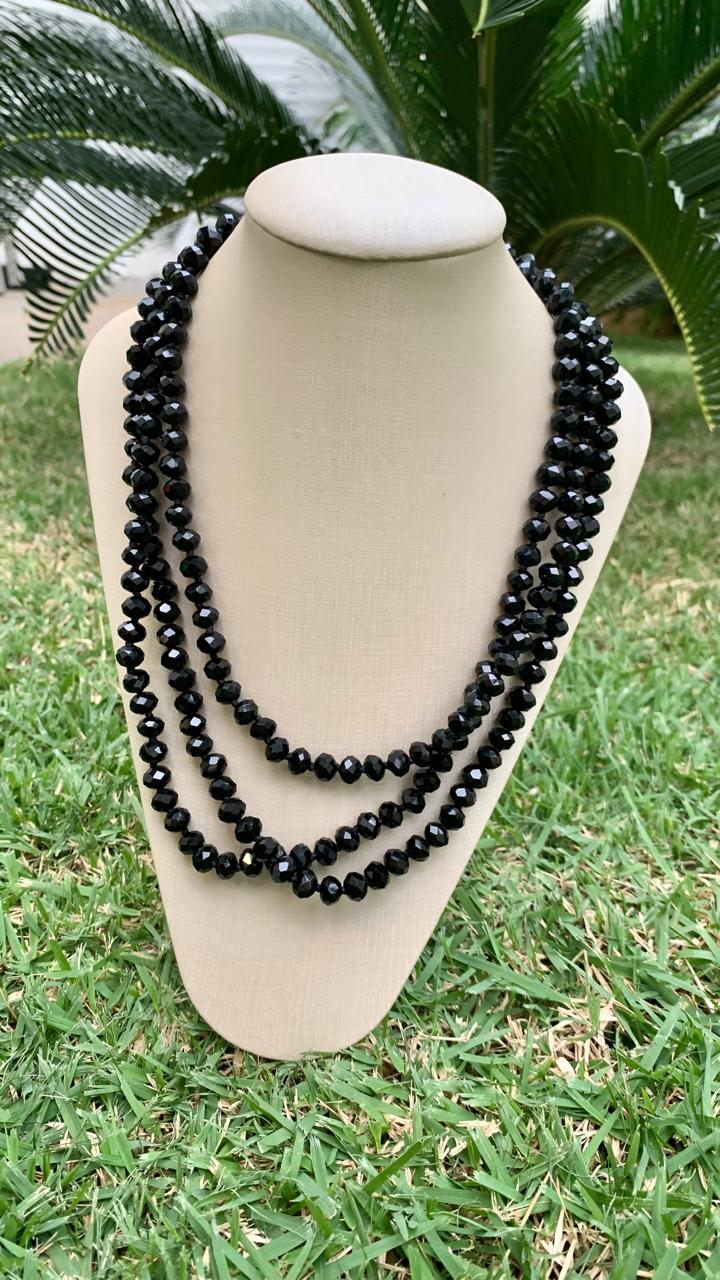 Colar banhado a ouro 18k, com 45cm de comprimento, com cristais de ônix negro.