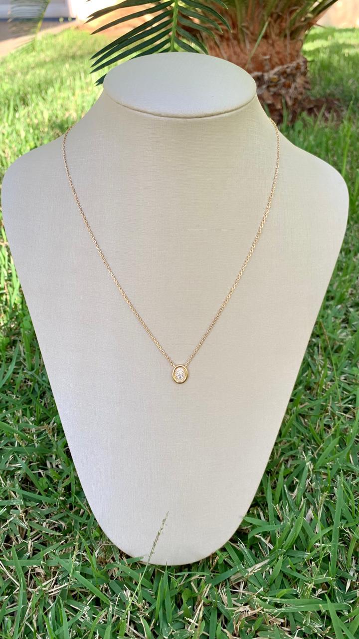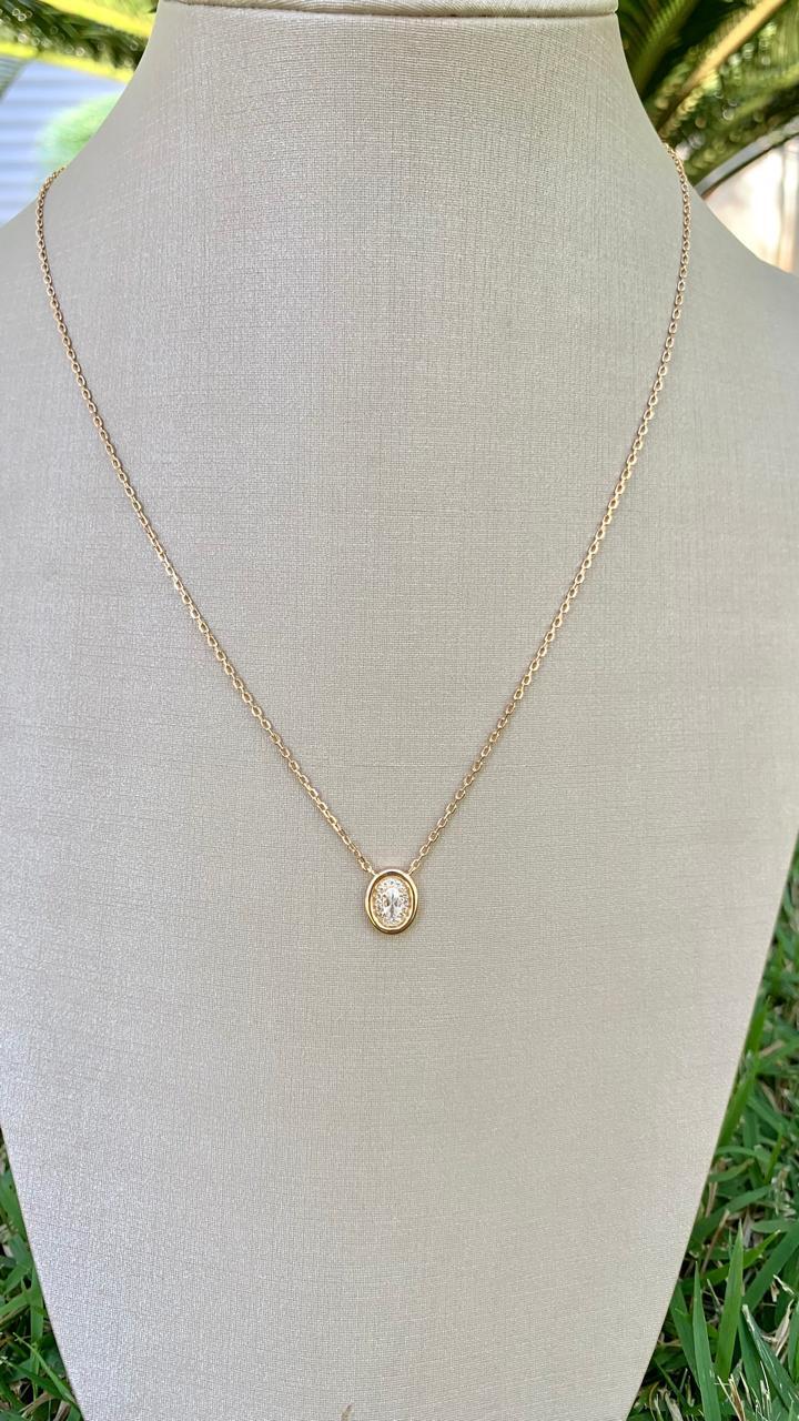 Colar oval com pedra oval 7mm em prata 925 e banho de ouro 18k.
