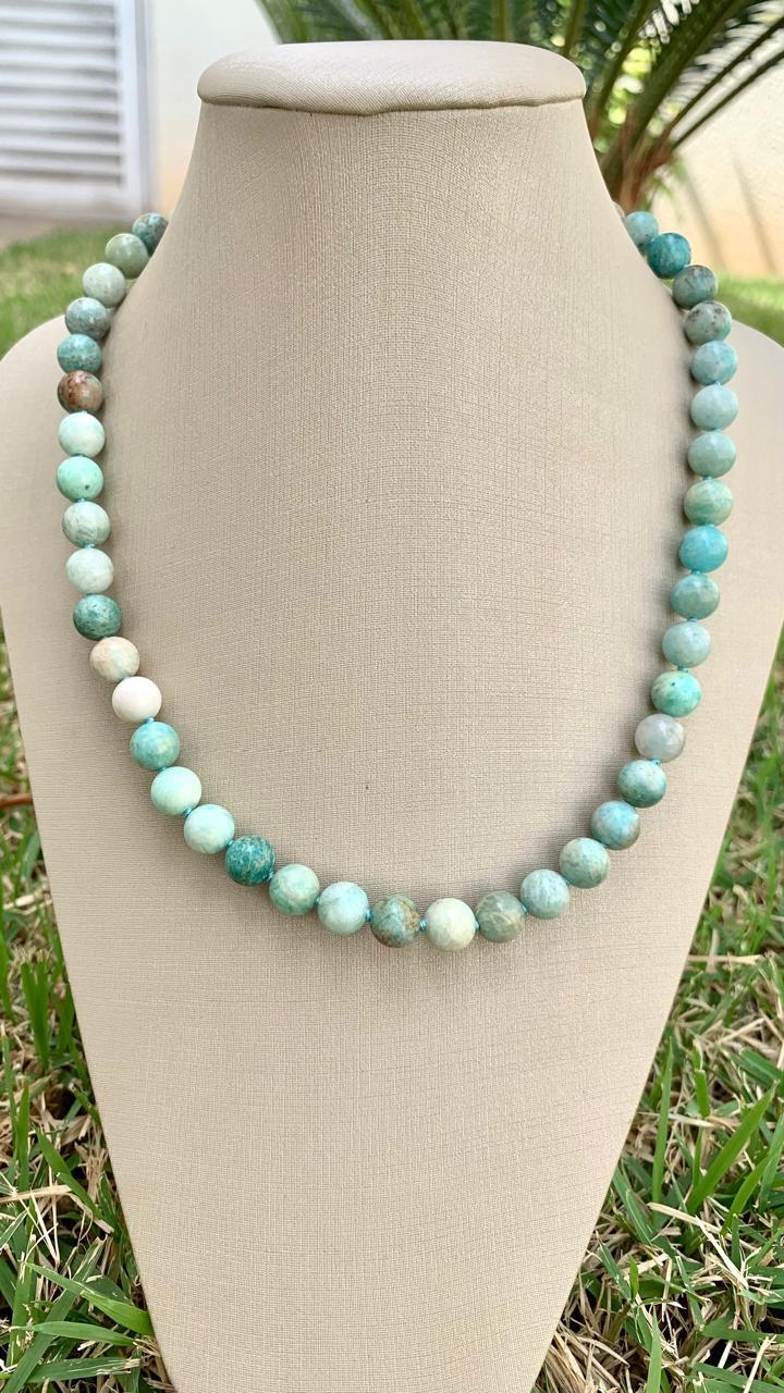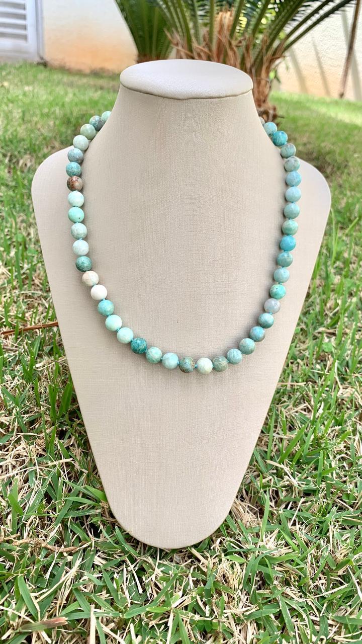 Colar pedra natural amazonita, banhado a ouro 18k.