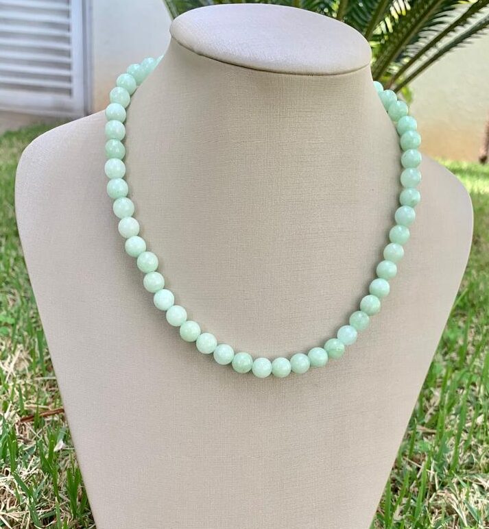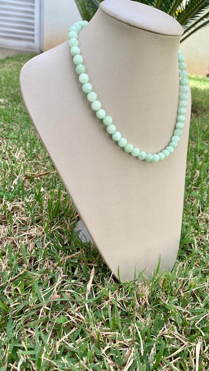 Colar pedra natural jade amazonita, banhado a ouro 18k.
