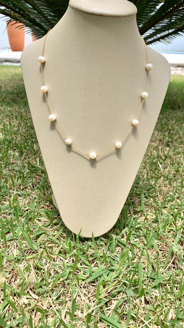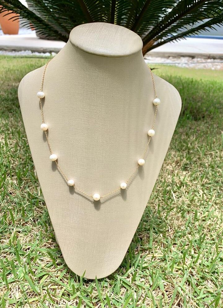 Colar pérola natural, banhado a ouro18k.