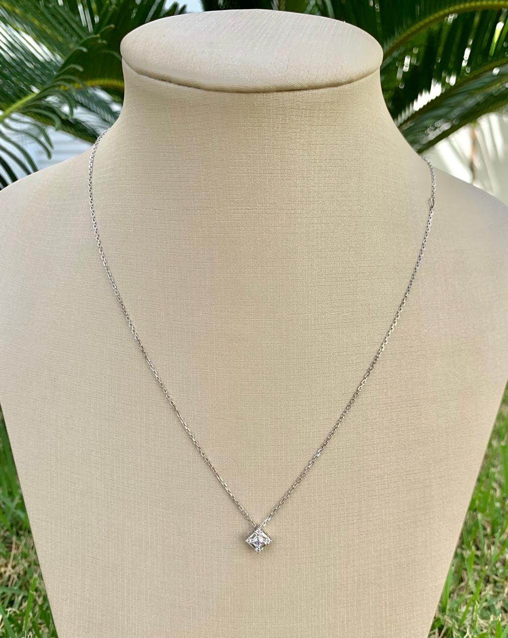 Colar em prata 925, com ponto de luz quadrado.