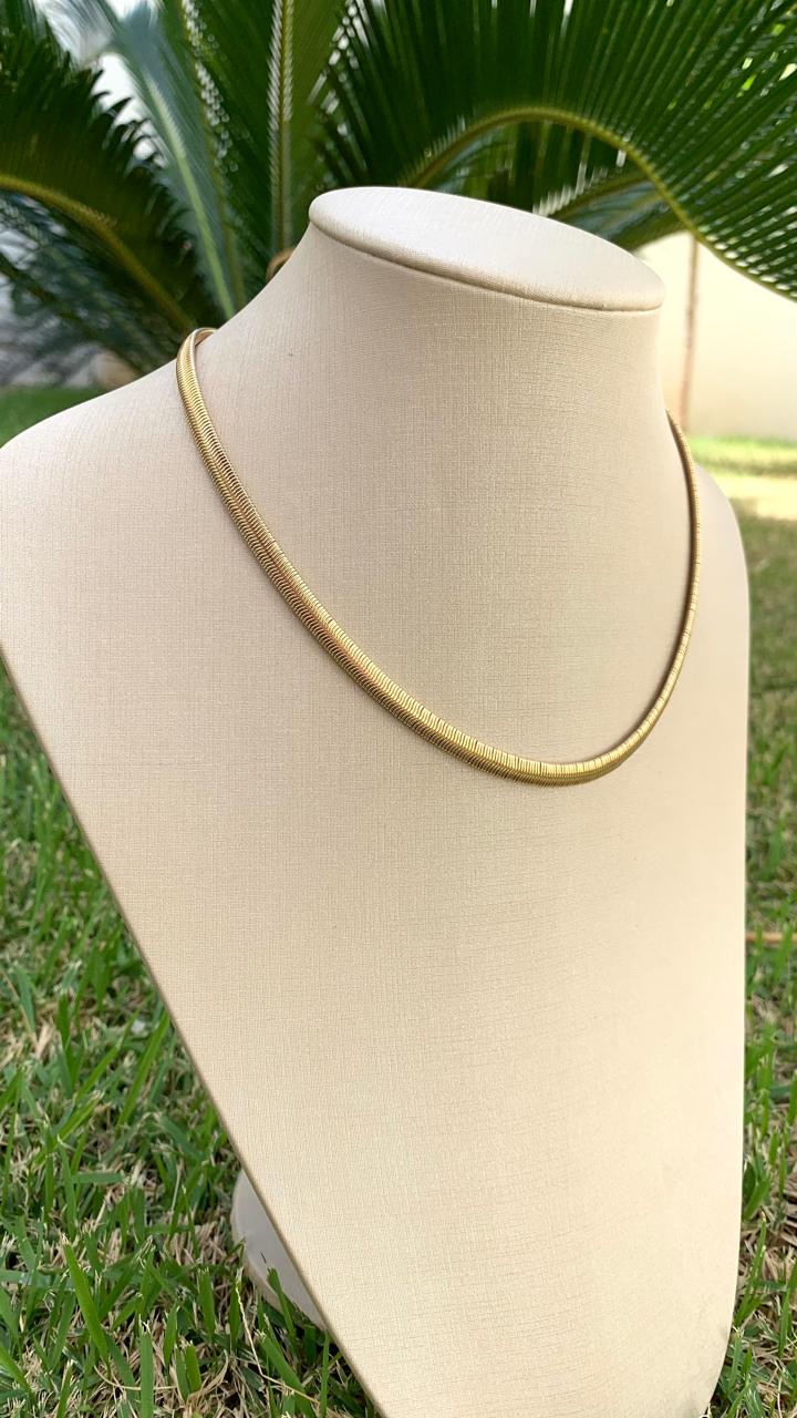 Colar rabo de rato, com 45cm de comprimento, banhado a ouro 18k.