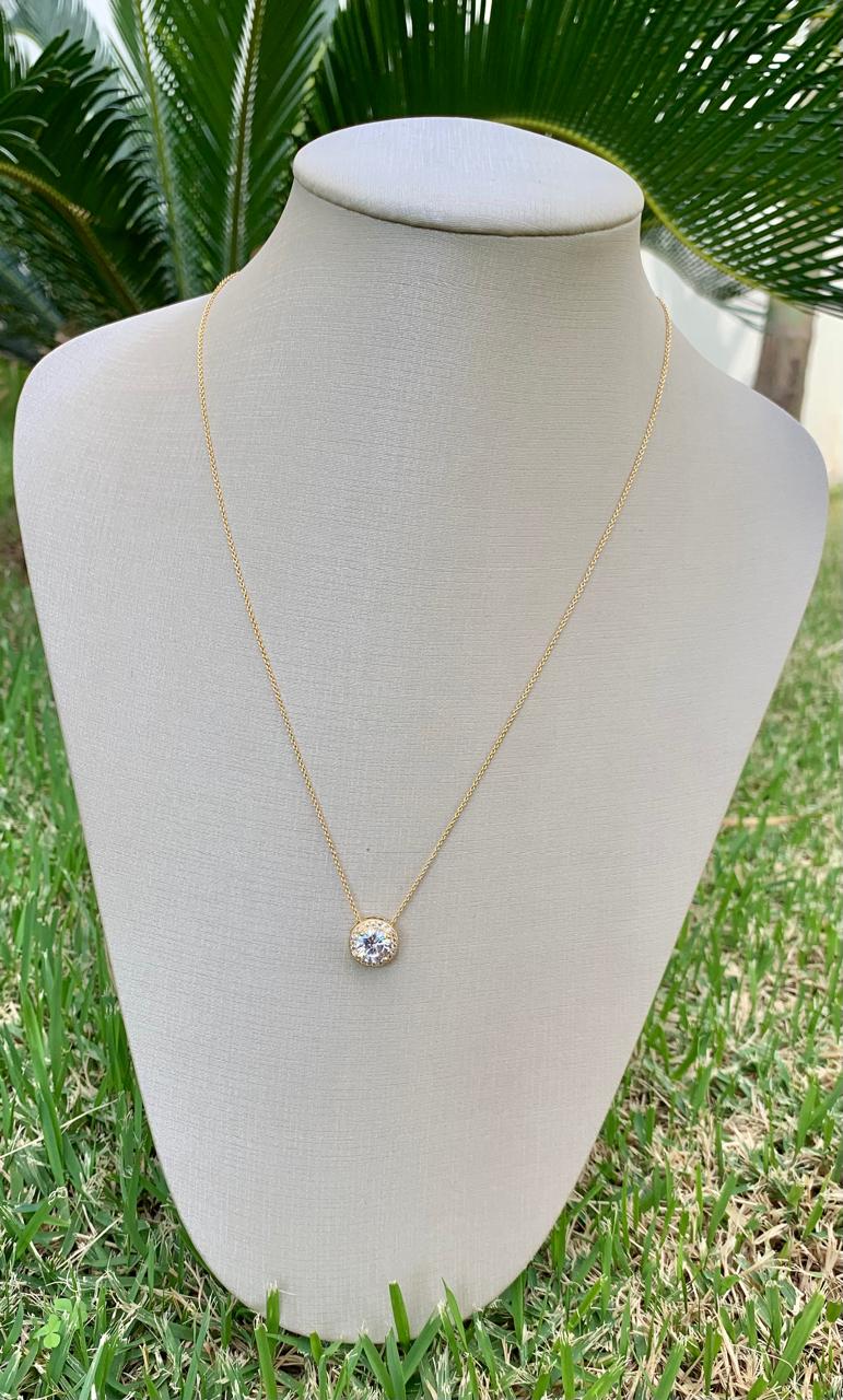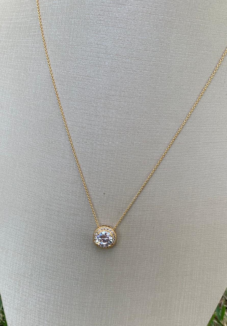 Colar ponto de luz cravejado de zircônia, banhado a ouro 18k, tamanho 45cm.