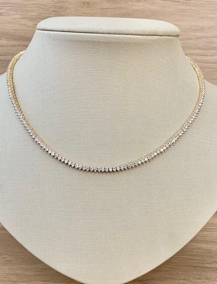 Colar riviera 3 pontos, com 40cm, banhado a ouro18k.