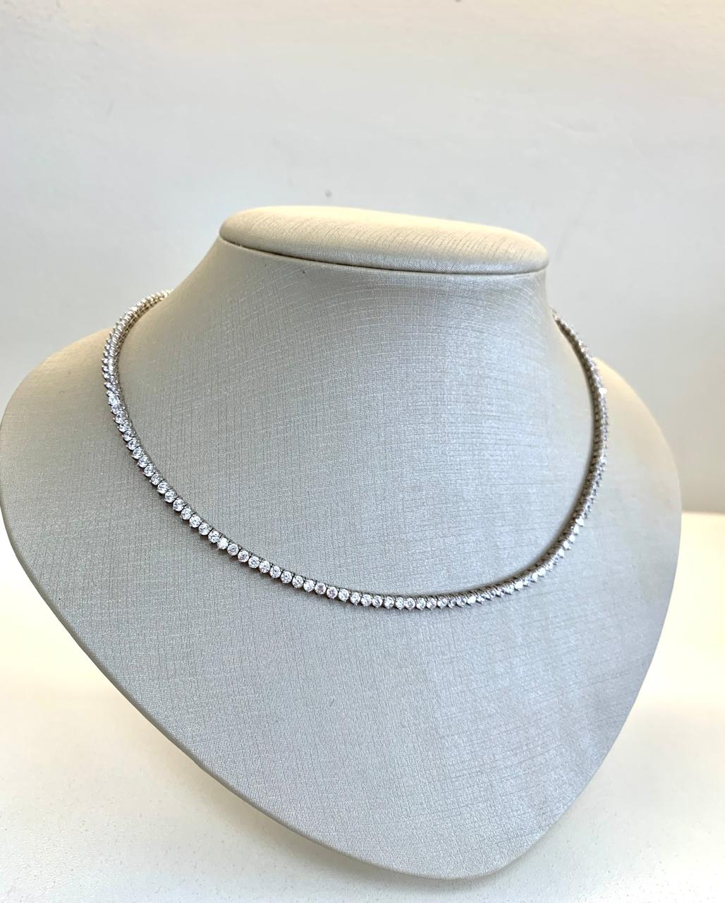Colar Riviera em prata 925, com 3 garras, tamanho 40cm.