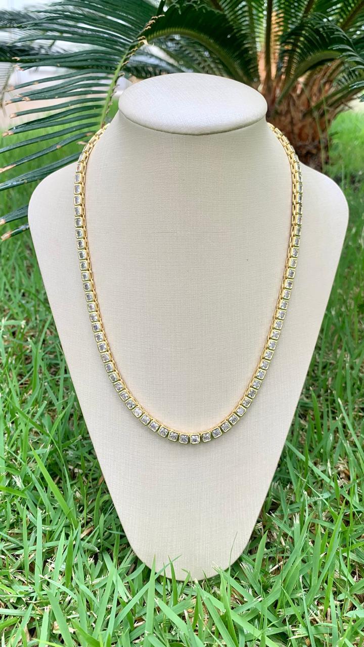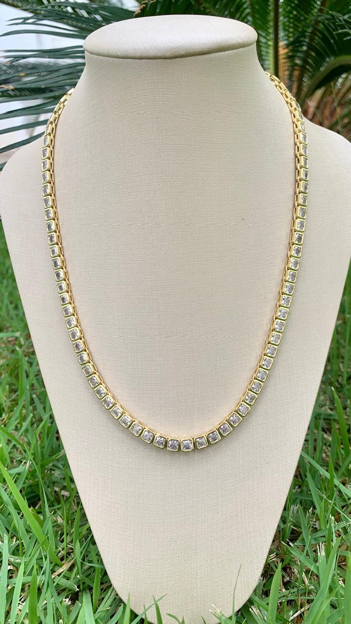 Colar riviera quadrada 45cm, banhada a ouro18k.