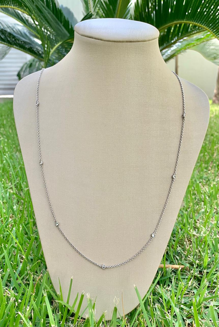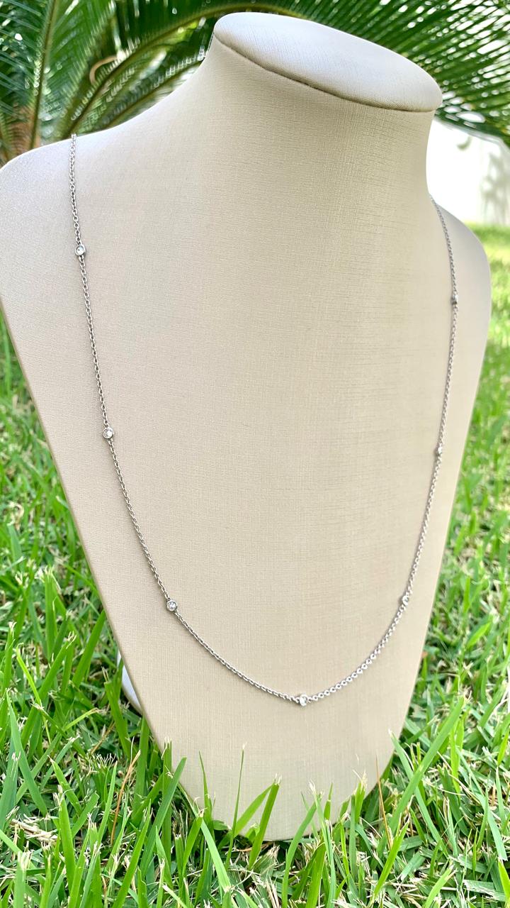 Colar de prata 925, com 70cm de comprimento, com pontos de luz de zircônias.