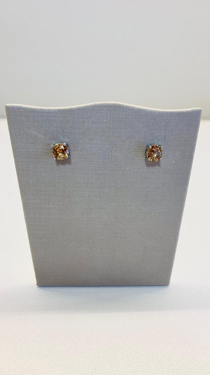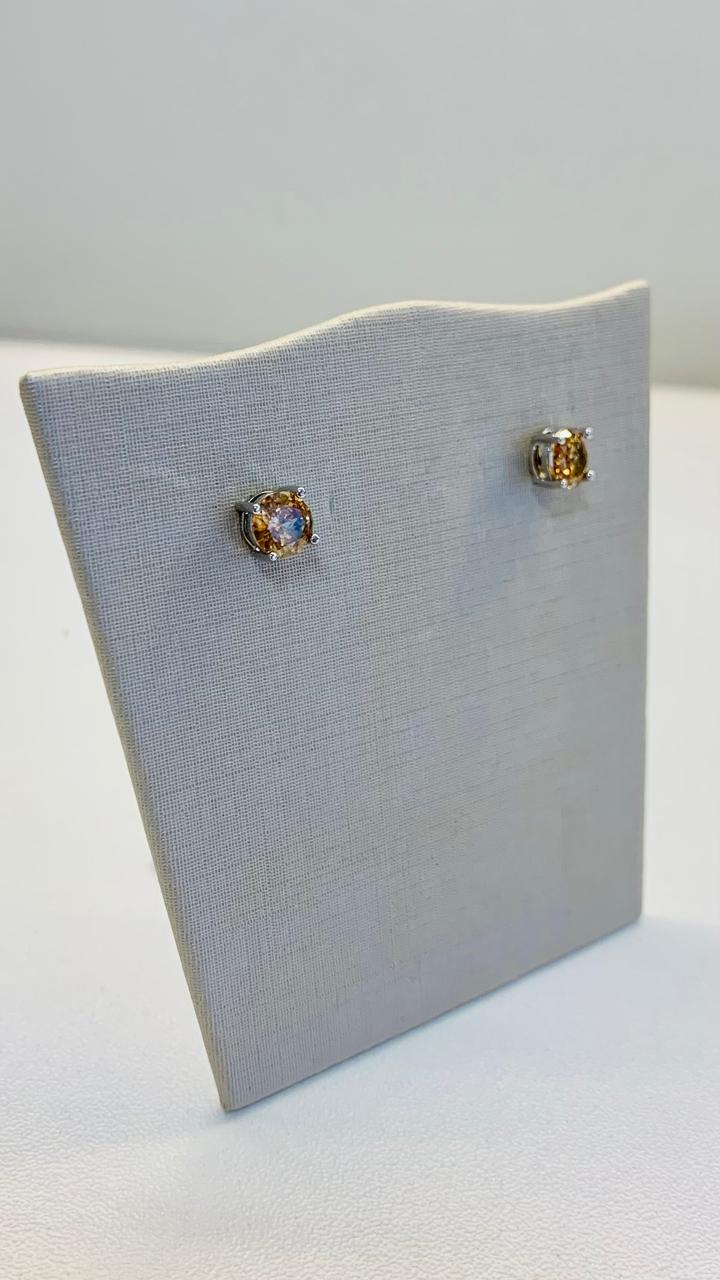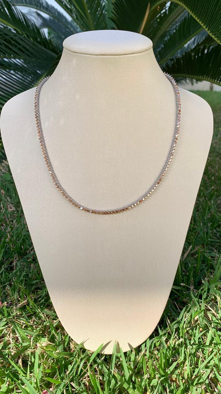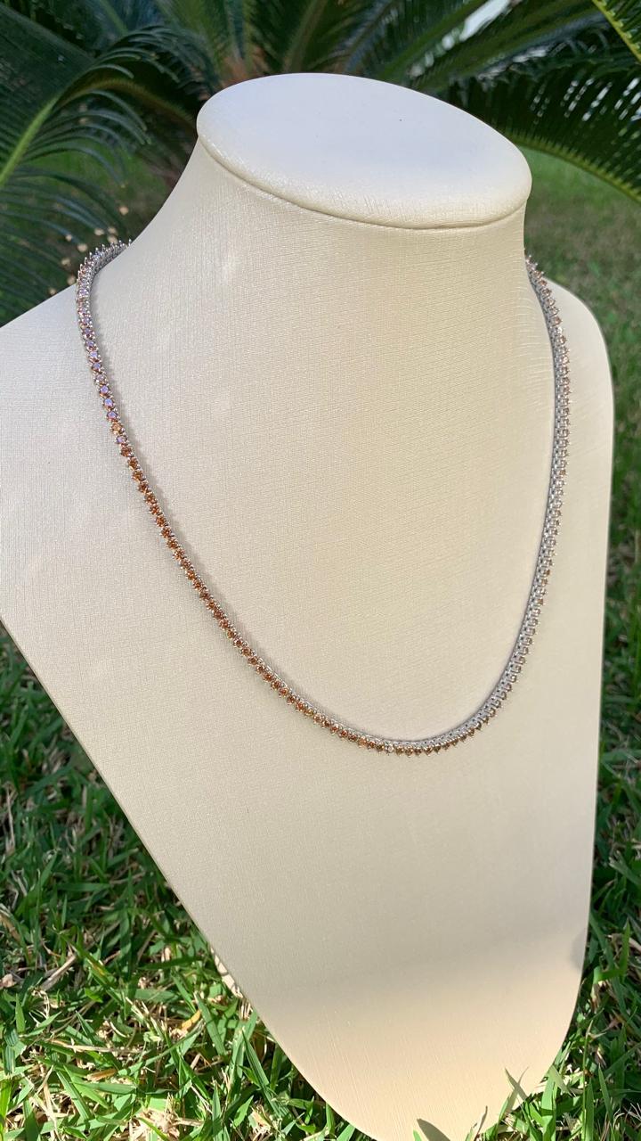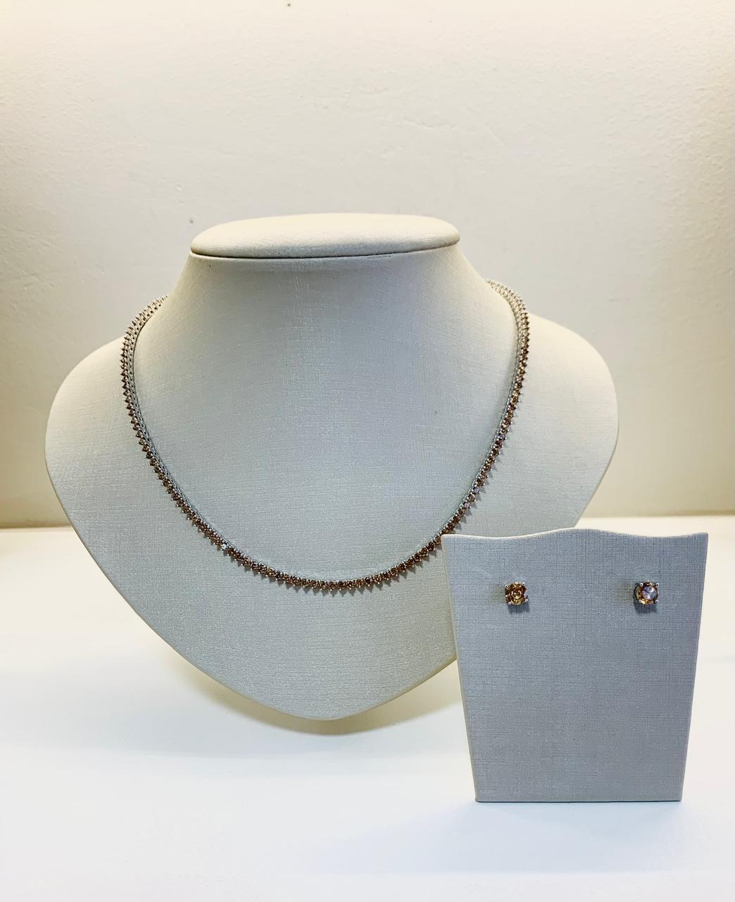 Conjunto Brinco e Colar Riviera Chocolate em Ródio Branco
