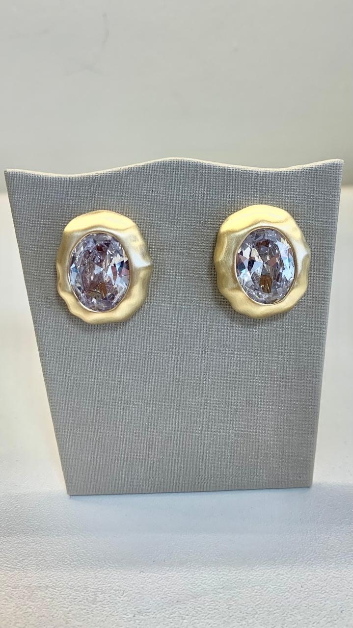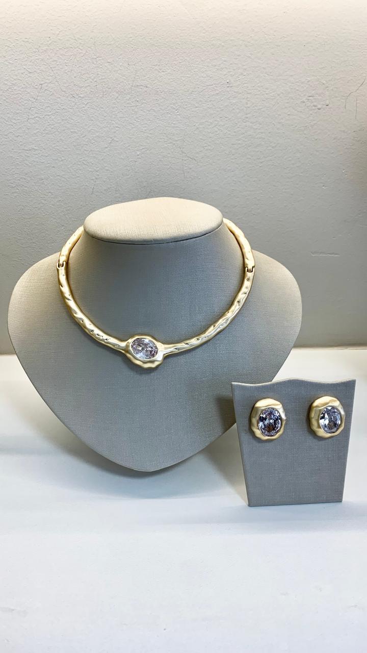 Conjunto aro e brinco escovado com zircônia, banhado a ouro 18k.