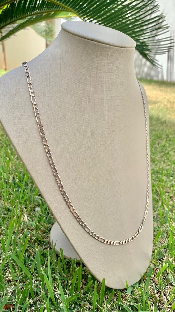 Corrente fígaro de prata 925, com 70cm de comprimento, modelo unissex.