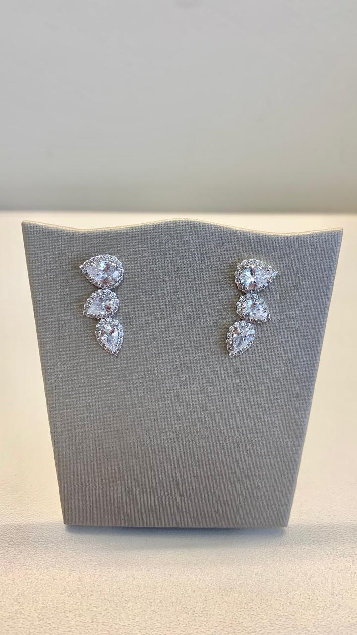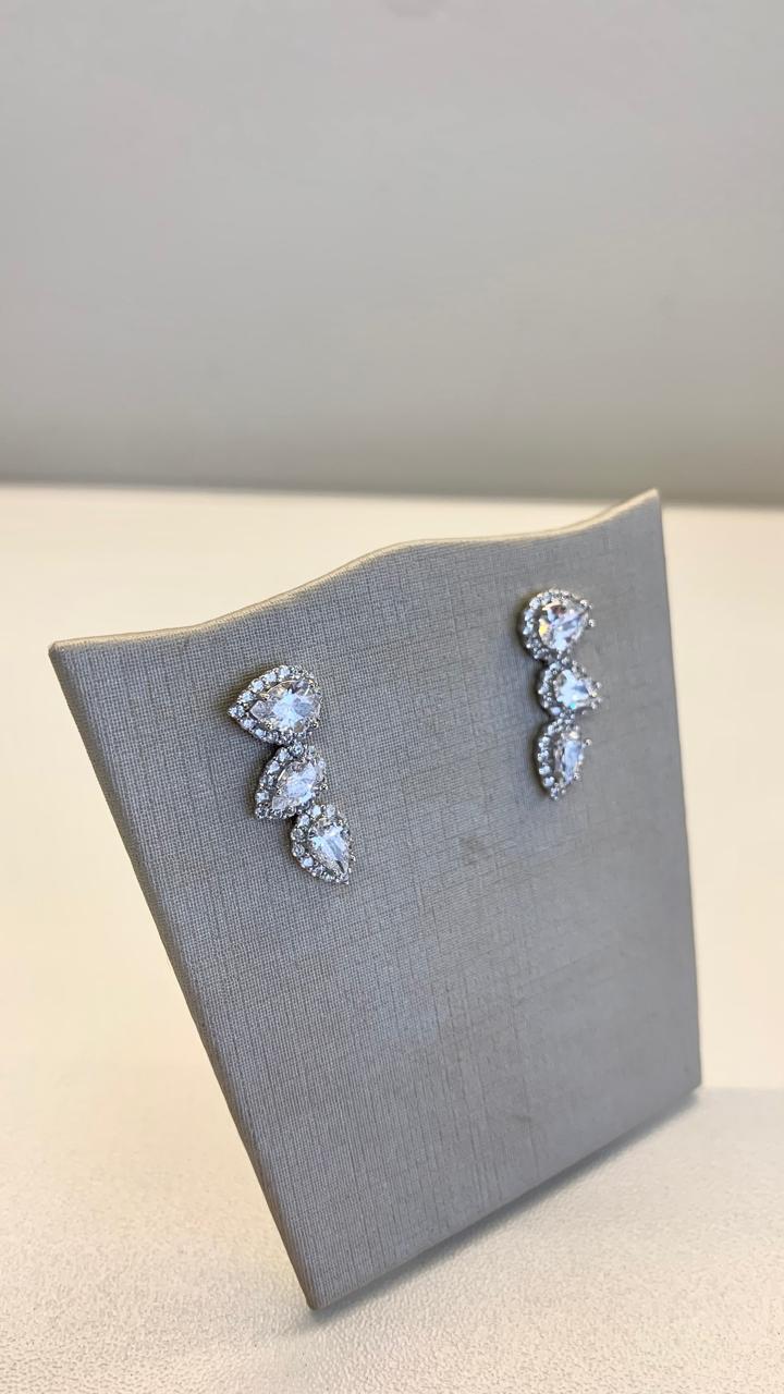 Brinco ear cuff com três gotas de zircônias brancas, com cravação em volta, em prata 925.