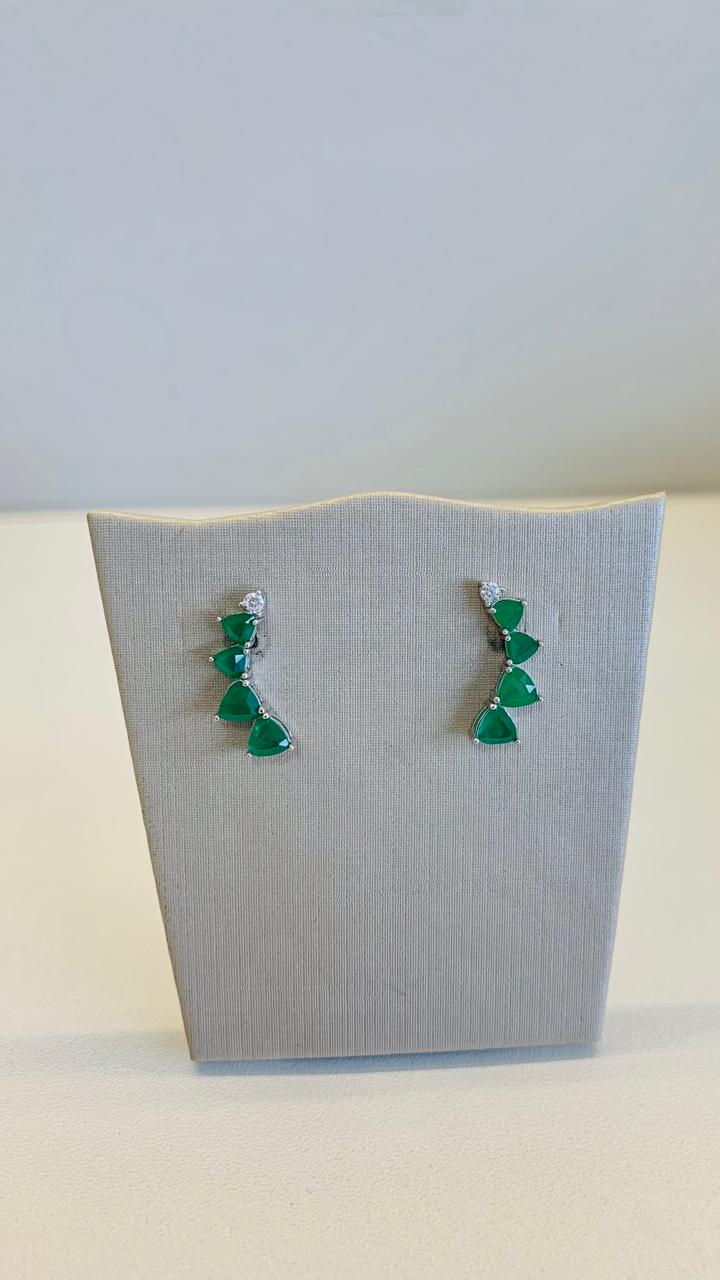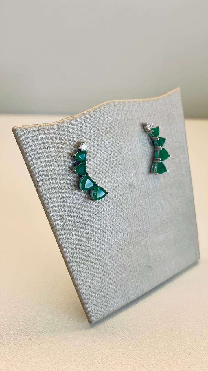 Brinco ear cuff de esmeralda com uma zircônia em prata 925.
