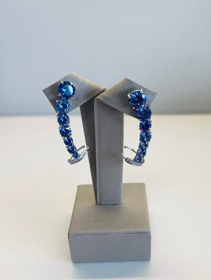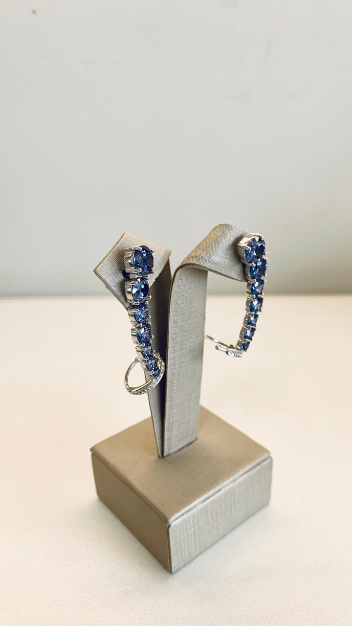 Brinco ear cuff sete pontos de luz decrescentes com pedra tanzanita e um clips cravejado com zircônias brancas, em prata 925.