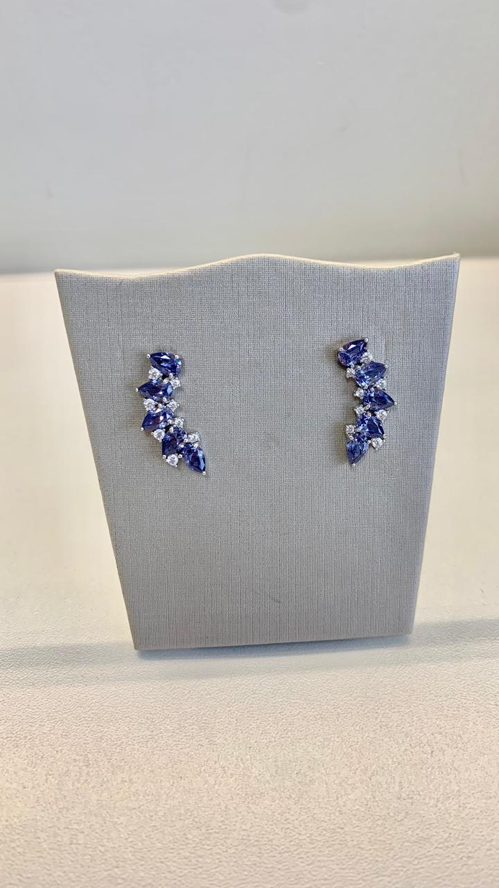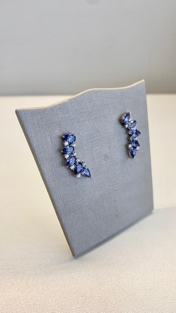 Brinco ear cuff com gotas de tanzanita e zircônias brancas em prata 925.