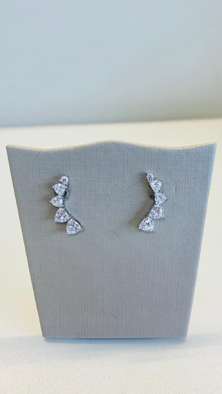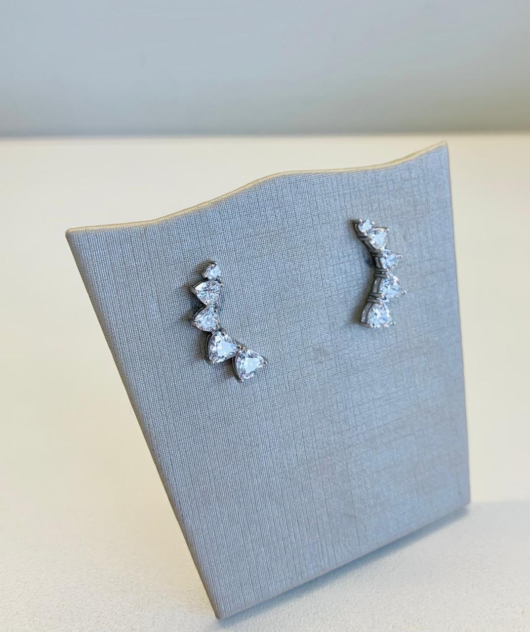 Brinco ear cuff com quatro triângulos decrescentes com ponto de luz no final, em prata 925.