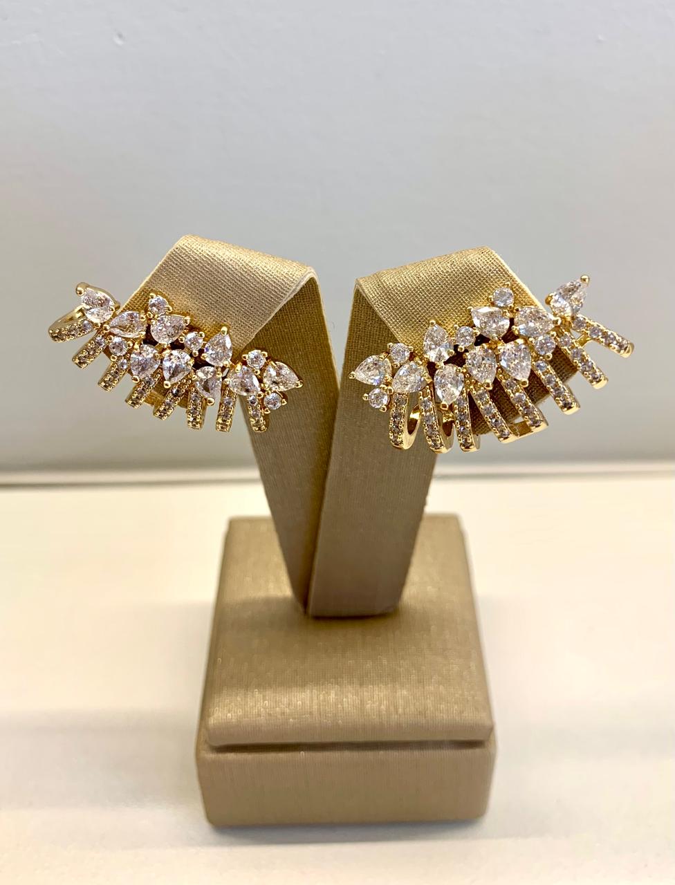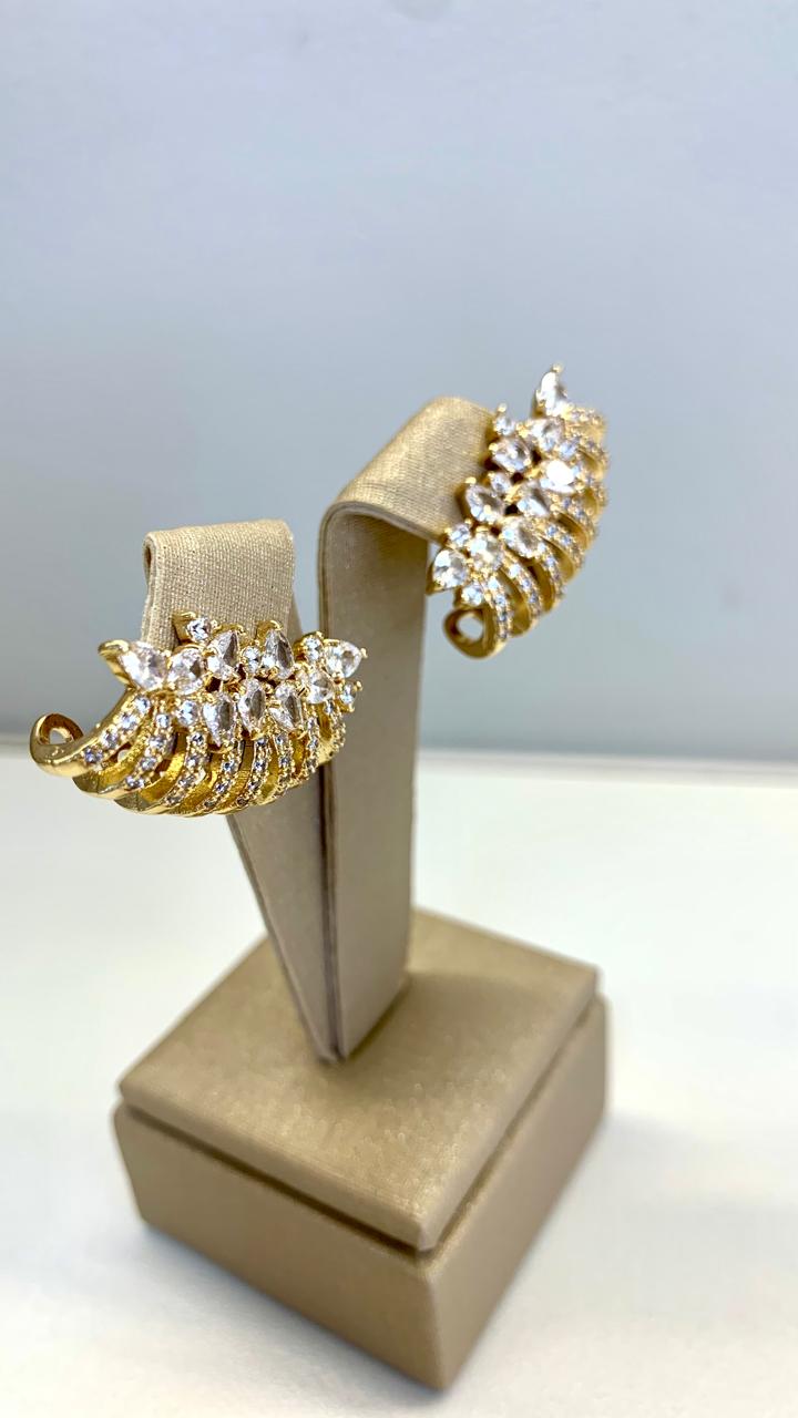 Brinco ear cuff banhado a ouro 18k, com ondas e zircônias.