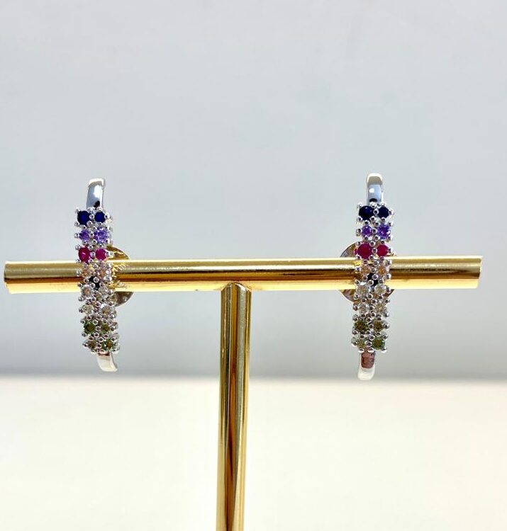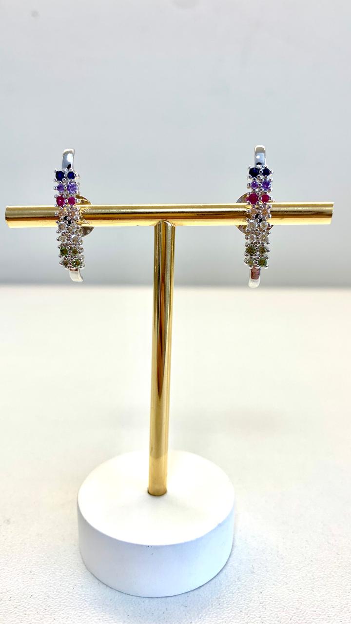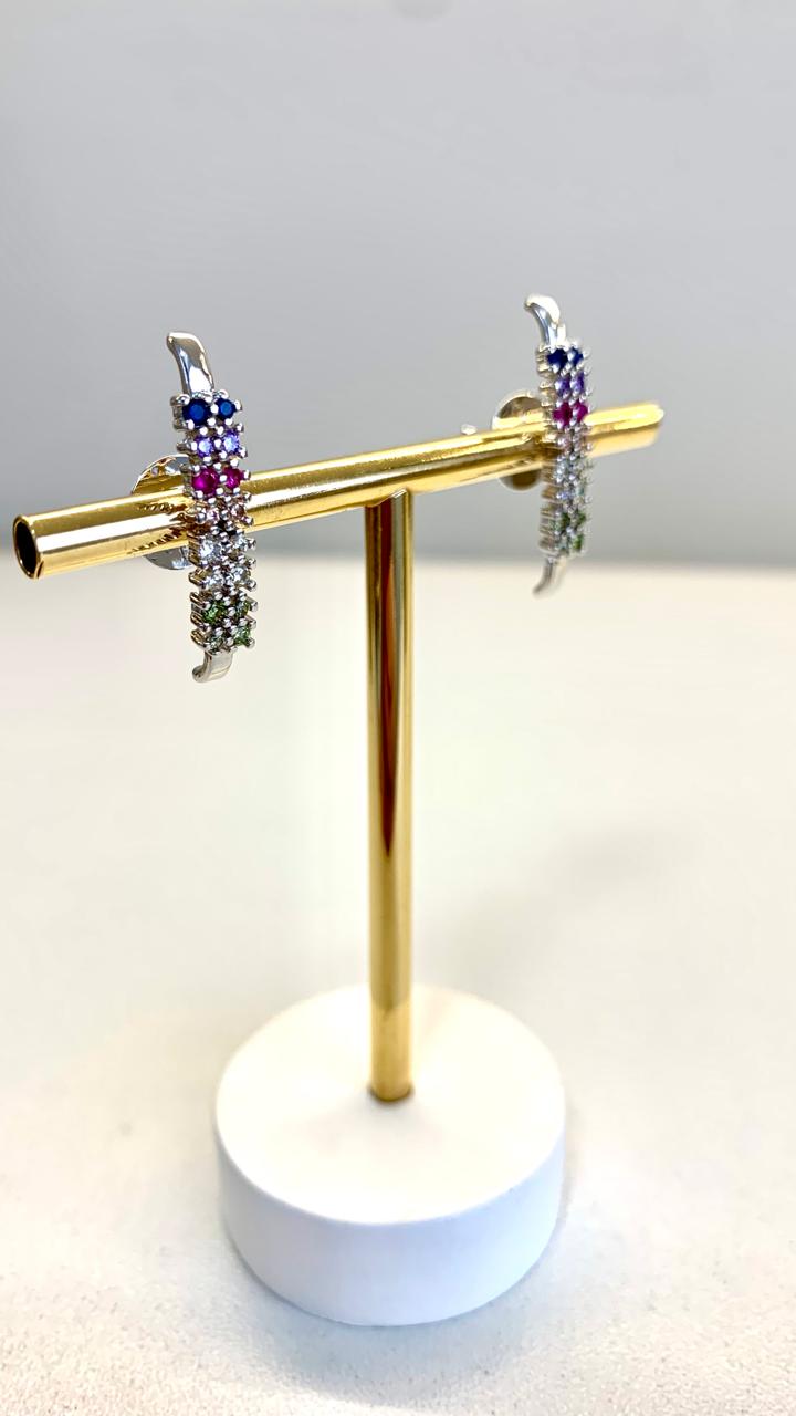 Brinco ear hook com zircônias coloridas de ródio branco.