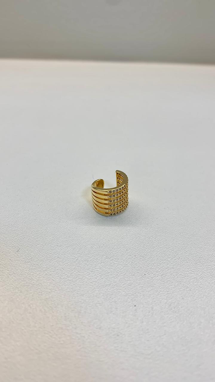 Piercing 6 fileiras cravejado com zircônias brancas, banhado a ouro 18k.