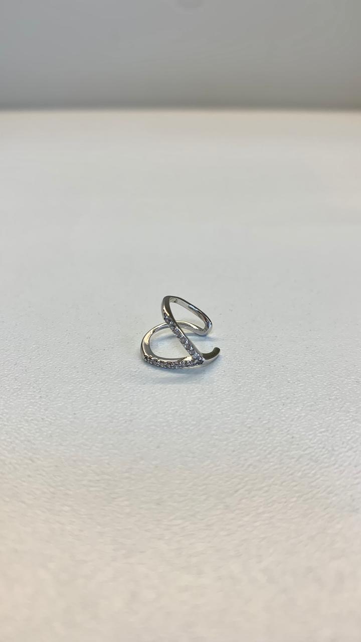 Piercing em v cravejado com zircônias brancas, em prata 925.