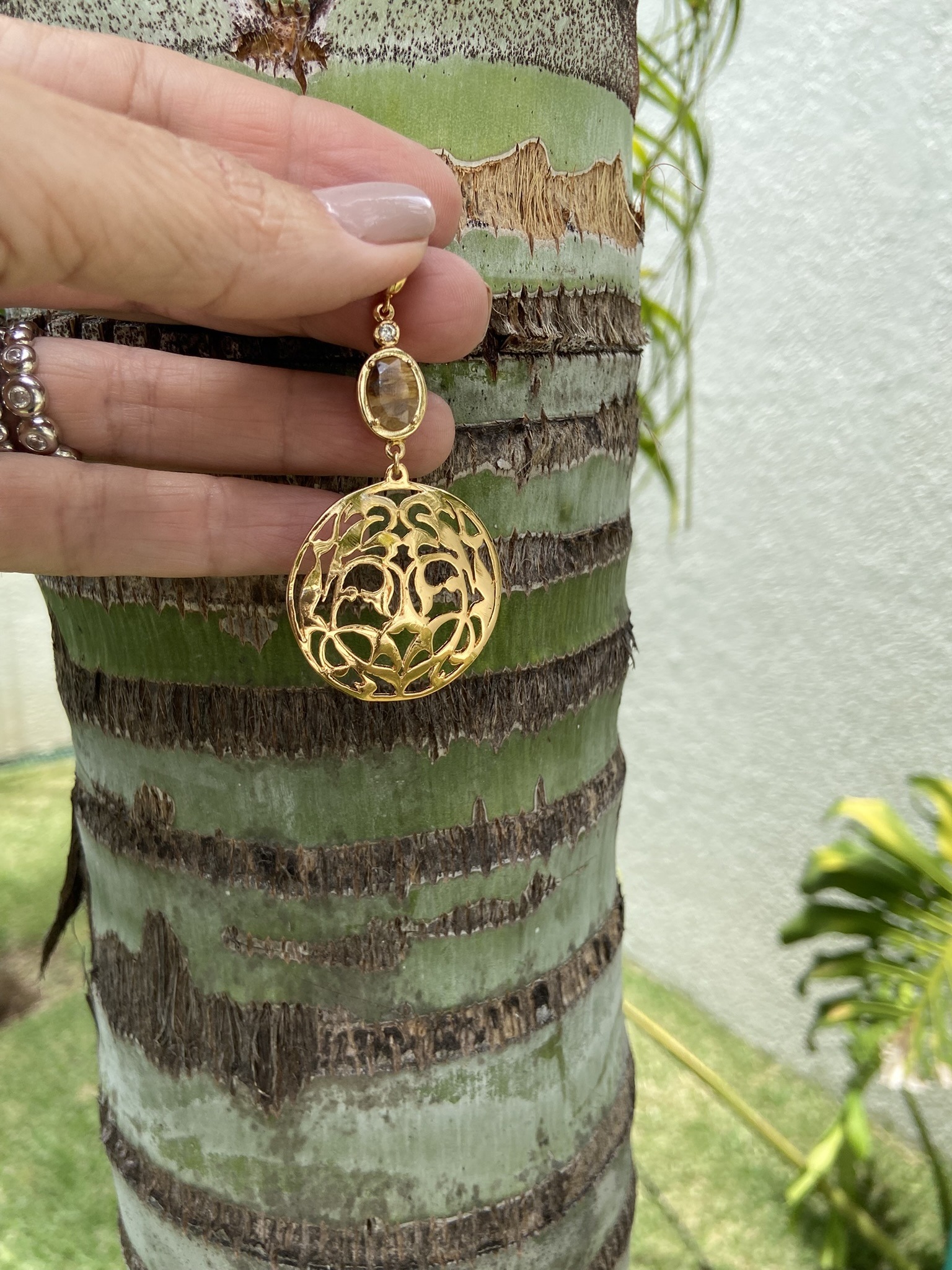 Pingente de pedra natural rutilo banhado a ouro18k.