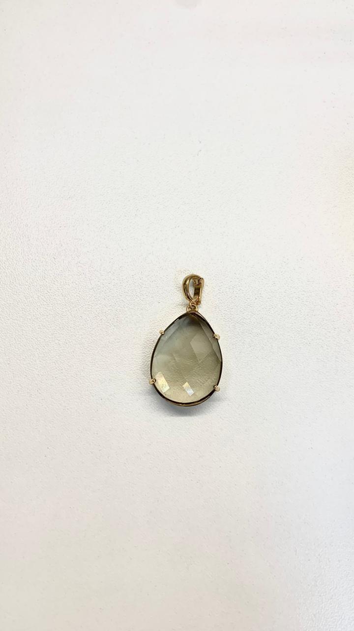 Pingente gota com pedra natural quartzo fume, banhado a ouro18k.