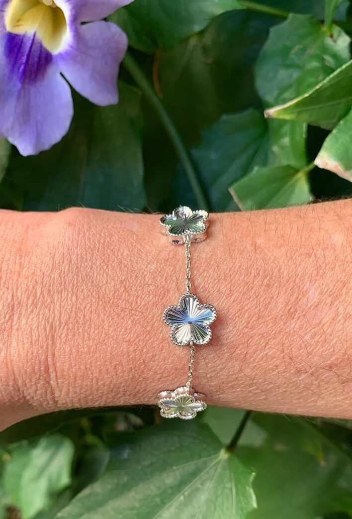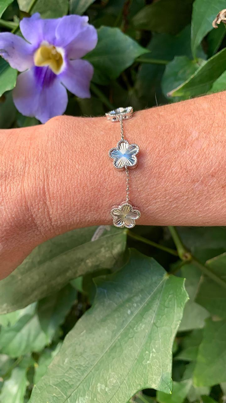 Pulseira 3 trevos riscado, com 17cm, em prata 925.