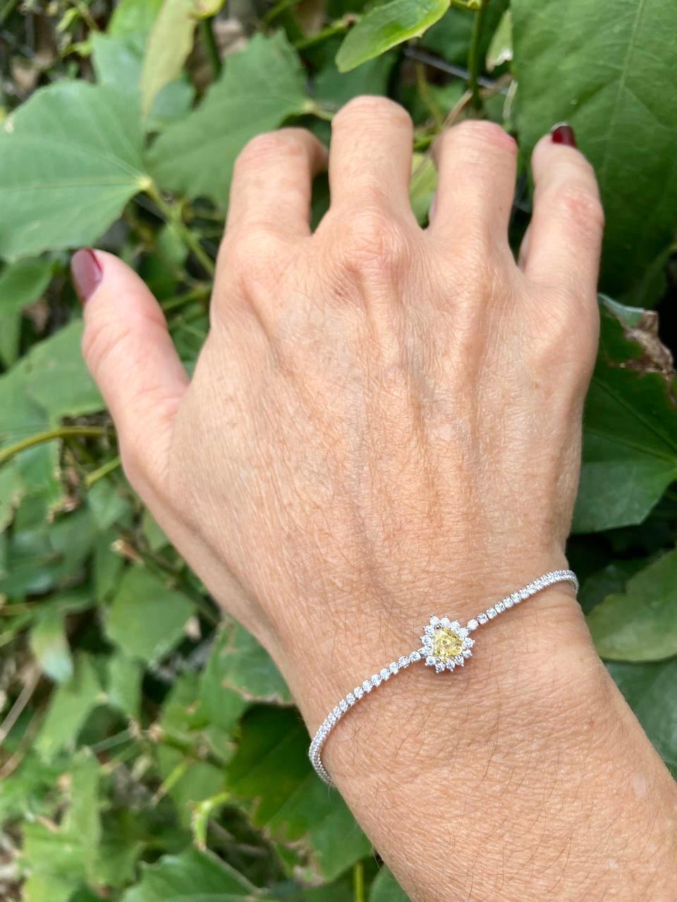 Pulseira com coração yellow fancy, cravejada de zircônias brancas, em prata 925. Com 17,5cm de comprimento.