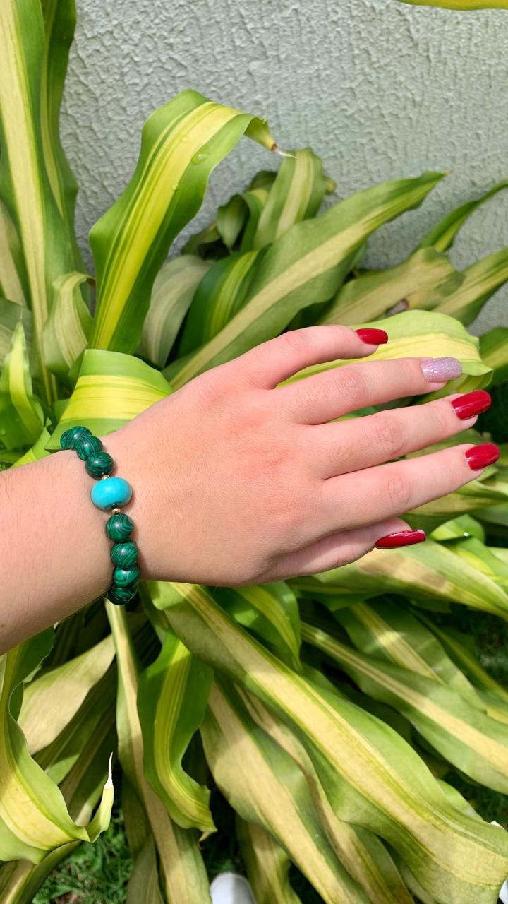 Pulseira de malaquita com howlita turquesa,feita com fio de silicone.
