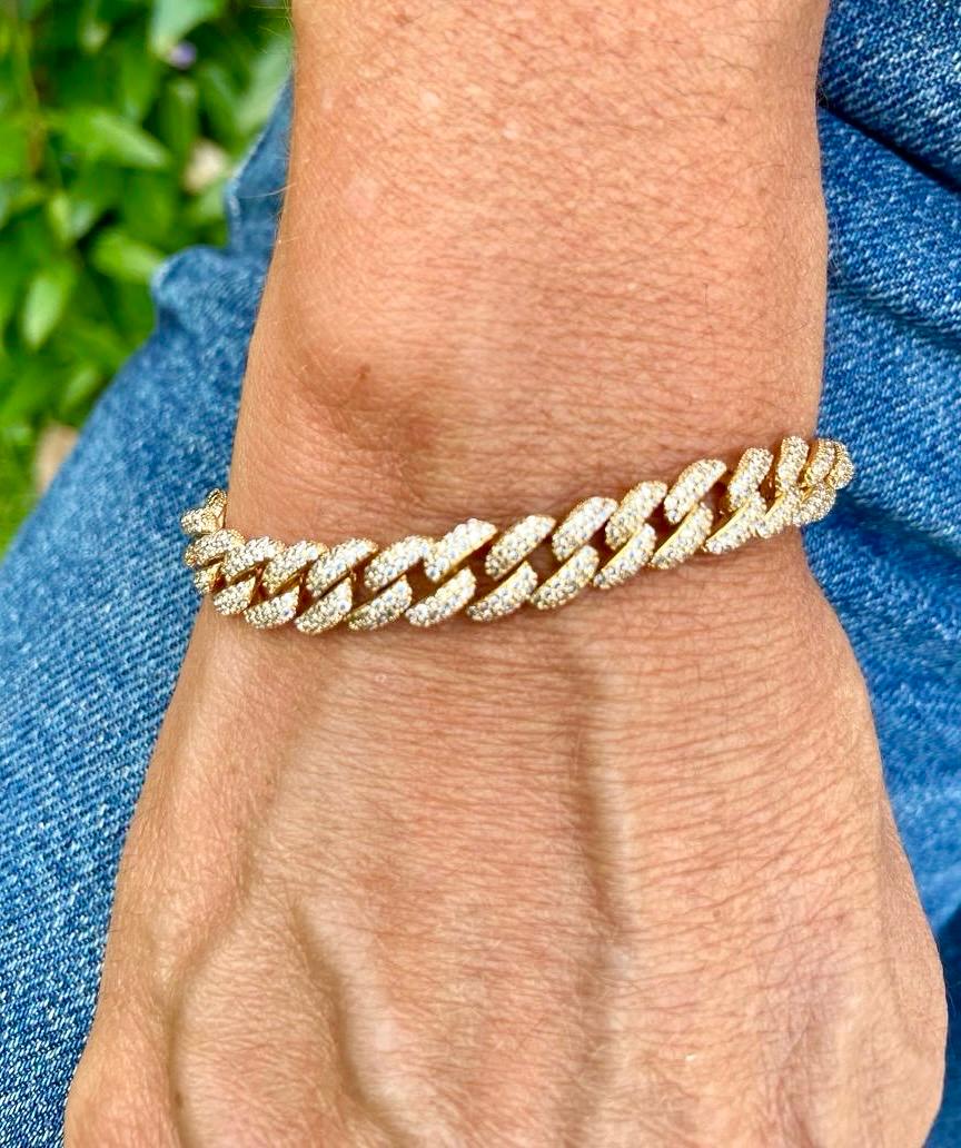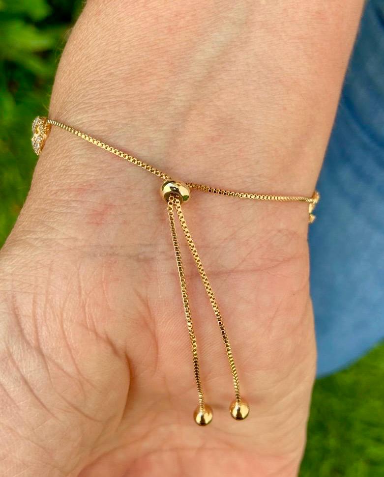 Pulseira elos banhada a ouro 18k, cravejada de zircônias, tamanho 27cm com fecho regulável.