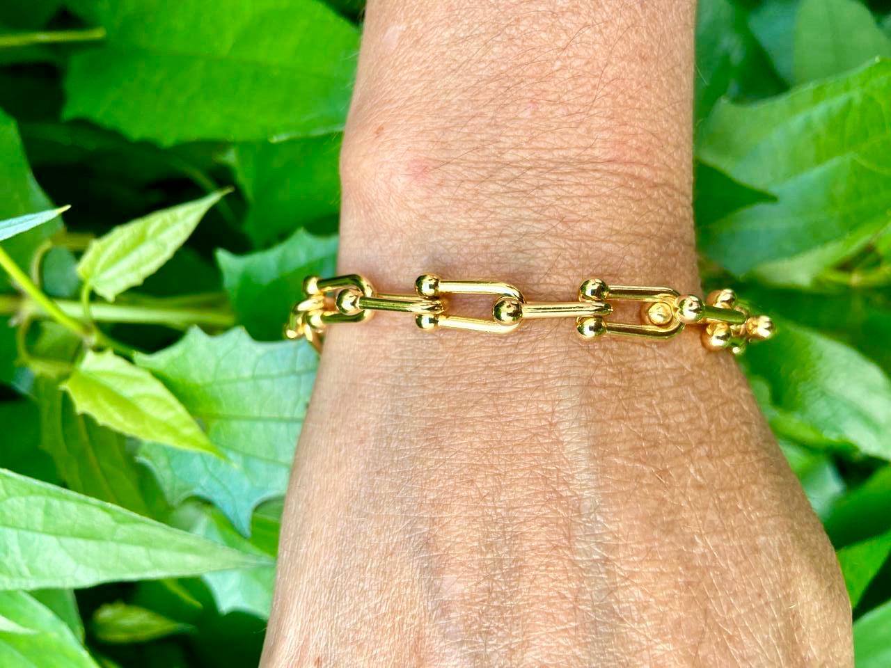 Pulseira elos médios, banhada a ouro 18k, tamanho 19cm mais extensor de 8cm.