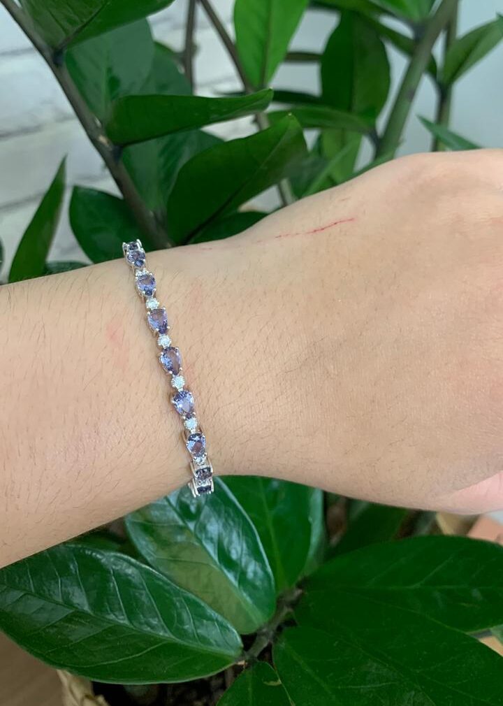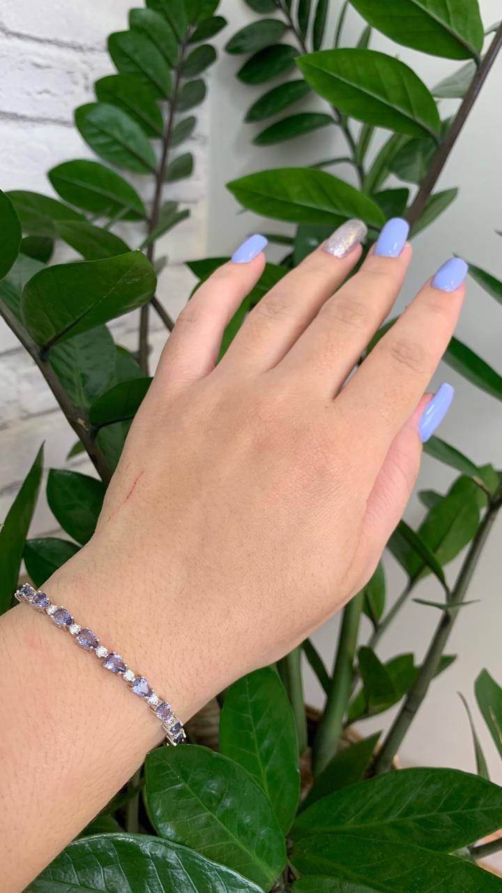 Pulseira riviera gotas de tanzanita 6mm, com 17cmde comprimento, em ródio branco.