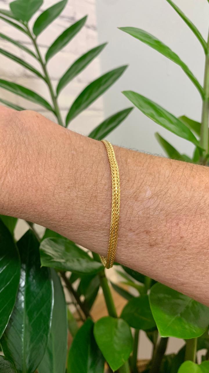Pulseira malha, com 17cm, banhada a ouro 18k.