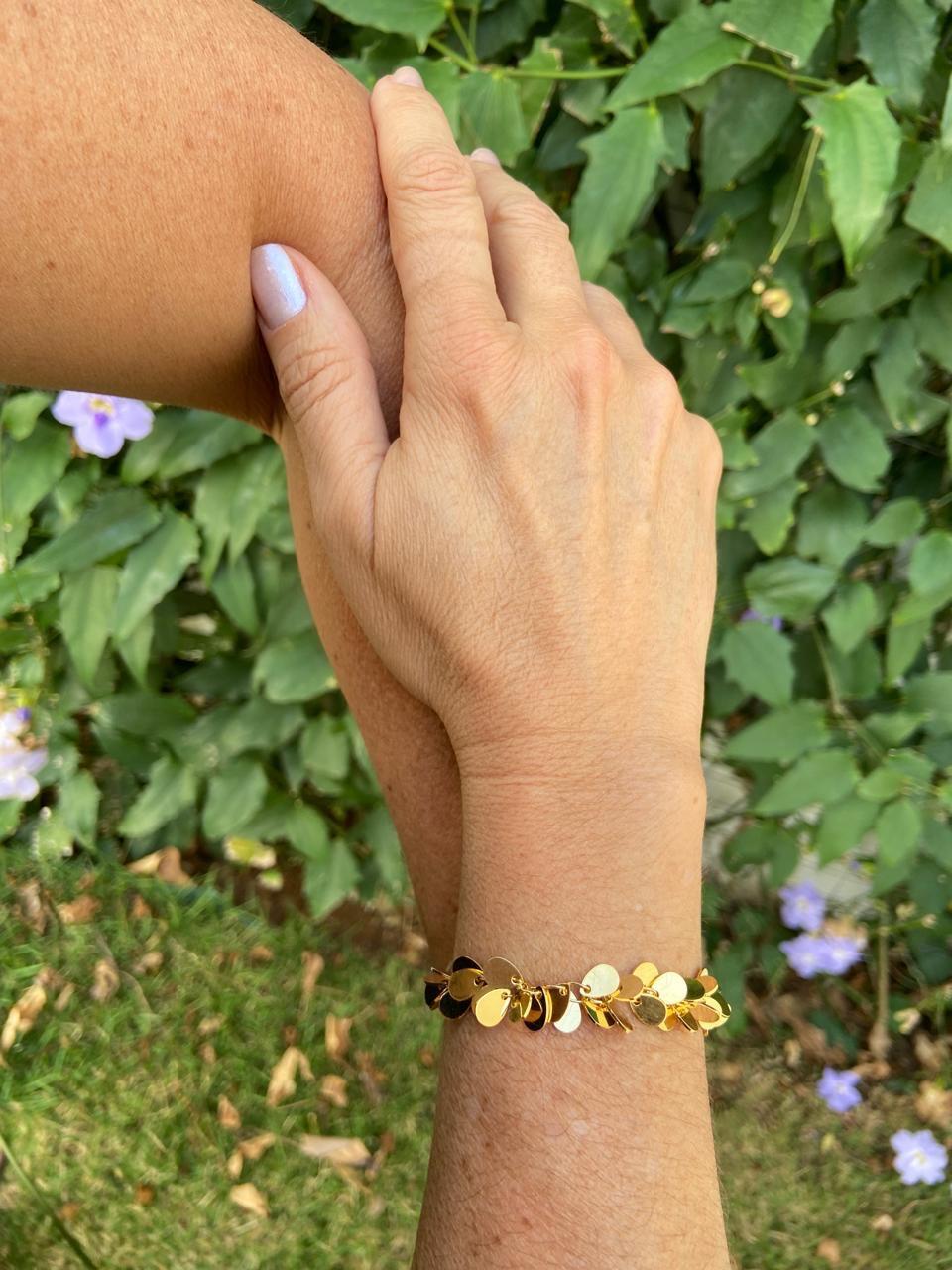 Pulseira com medalhas, banhada a ouro 18k.