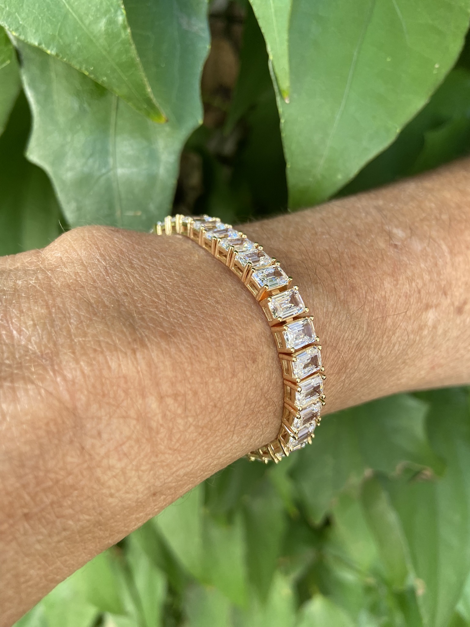 Pulseira riviera, com 18cm de comprimento, com cristais, banhada a ouro 18k.