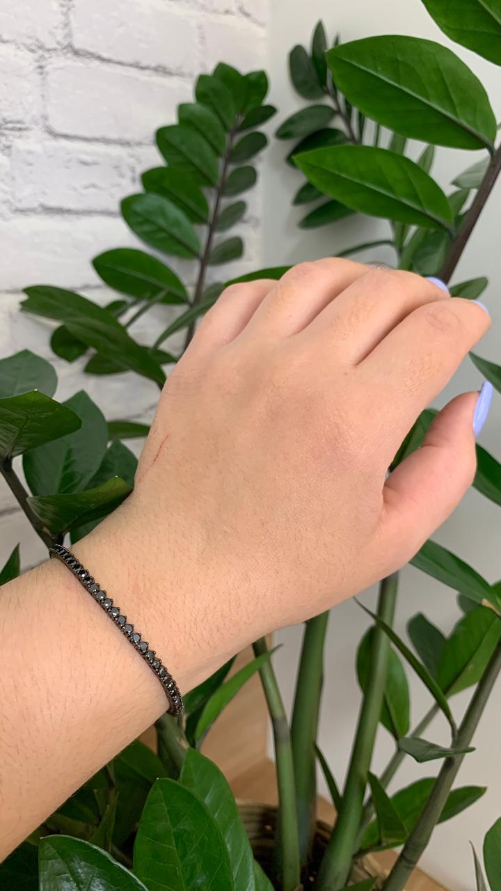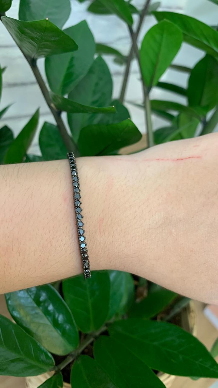 Pulseira riviera zircônia negra 2mm com 3 garras, em ródio negro.