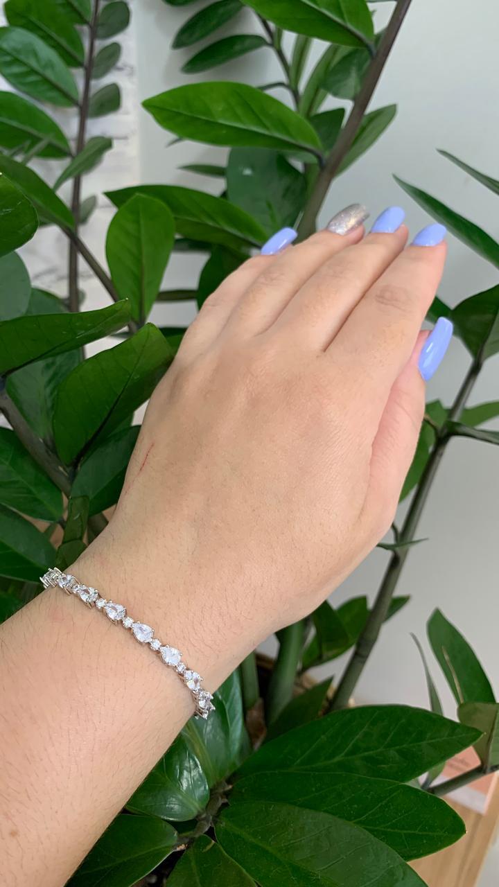 Pulseira riviera gotas de zircônias brancas 6mm, em ródio branco.